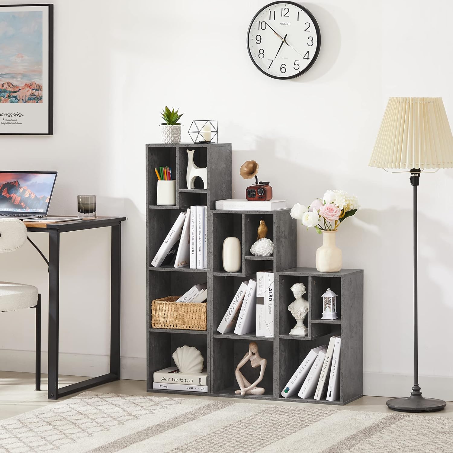 - š[Value for Money,Space Harmony] Affordable modern bookshelf can easily fit in tight spaces next to your sofa, TV or bed. Customize your space by easily combining or separating the bookshelves as needed. From the living room to the bedroom, this bookcase, with a clean, clear design, matches your home decor, makes everything in order.