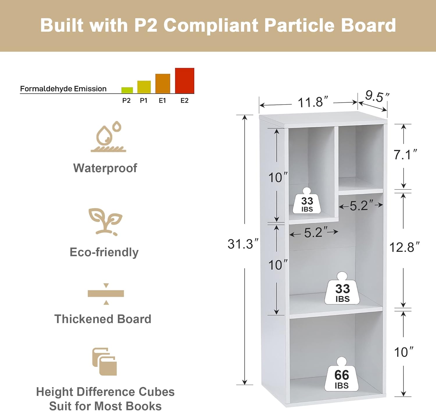 - š„°[Built to Last, Safe to Enjoy, Easy Clean-Up] Constructed with sturdy 0.3-inch-thick P2 engineering wood panel, formaldehyde emissions ⤠6mg, anti-tip design, this bookcase stands as a symbol that not only ensures stability, but prioritizes safety. In addition, it's water and scratch resistant, offering resilience to daily wear and tear. Keeping it looking its best is a breeze - a quick wipe with a small dry cloth is all it takes!