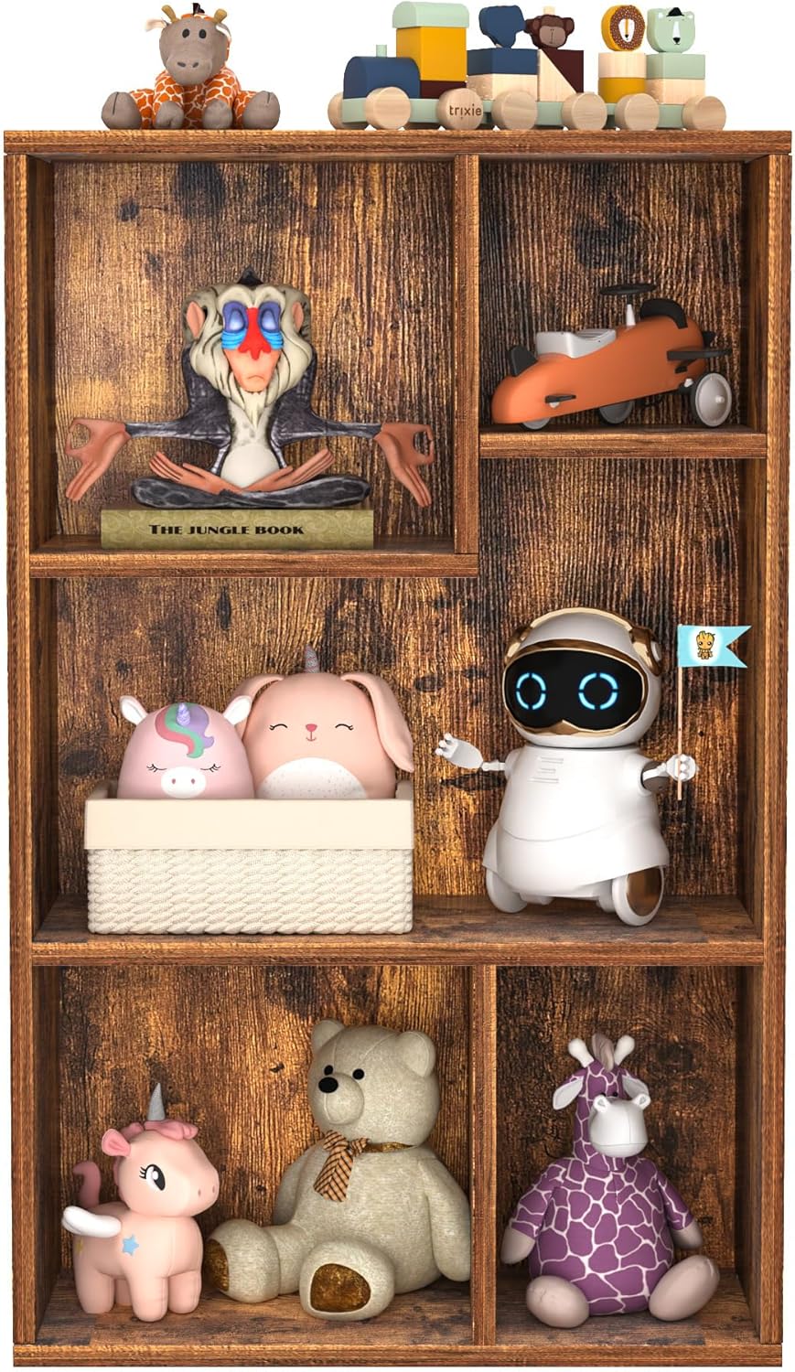 VECELO Modern Bookshelf, 5 Cube Shelf, Fits Tallest Hardcovers, Horizontal Available, Storage Organzier for Home Office, Vintage Brown