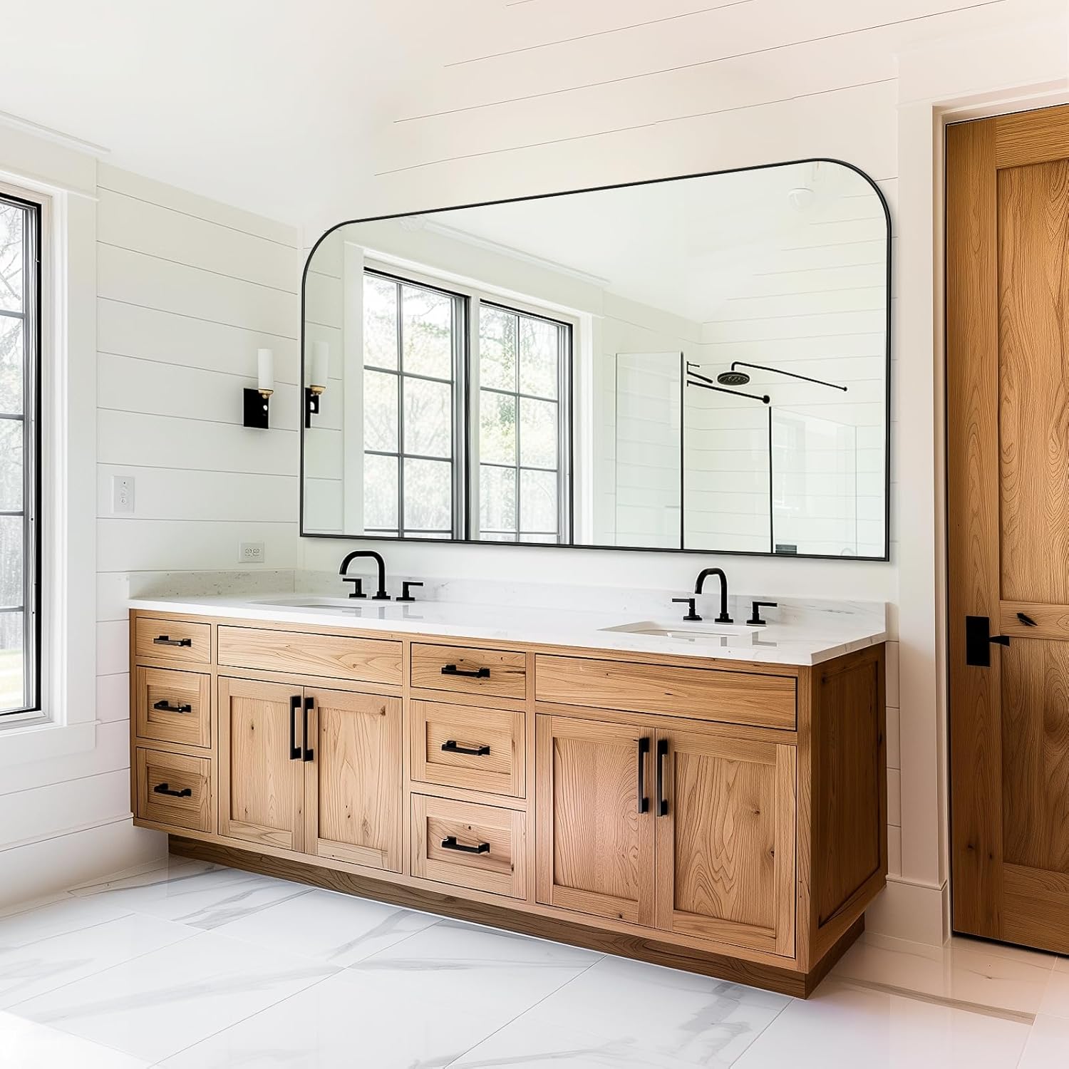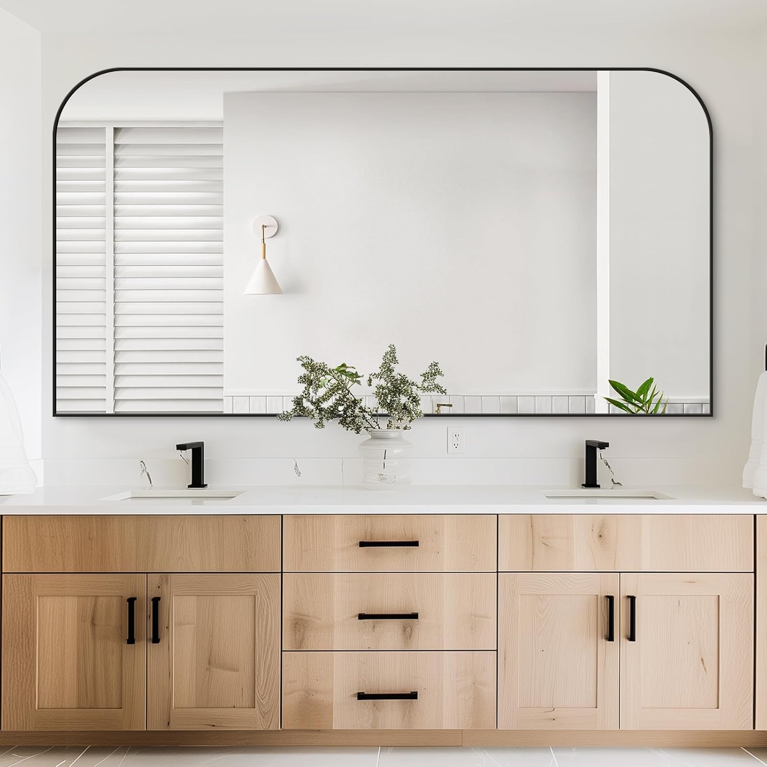 - Stylish Design: the wall mirror is very modern, making your bathroom more elegant and noble, extra eye-catching. Ideal for decorative vanity mirrors, making the space more spacious and bright