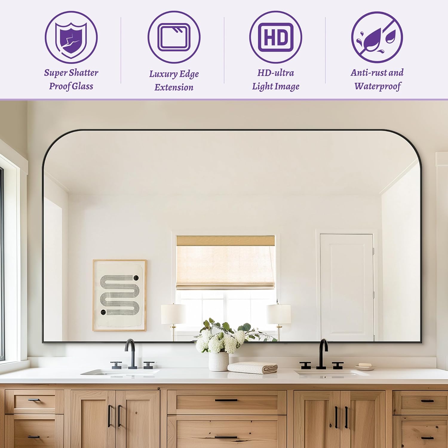 - Stylish Design: the wall mirror is very modern, making your bathroom more elegant and noble, extra eye-catching. Ideal for decorative vanity mirrors, making the space more spacious and bright