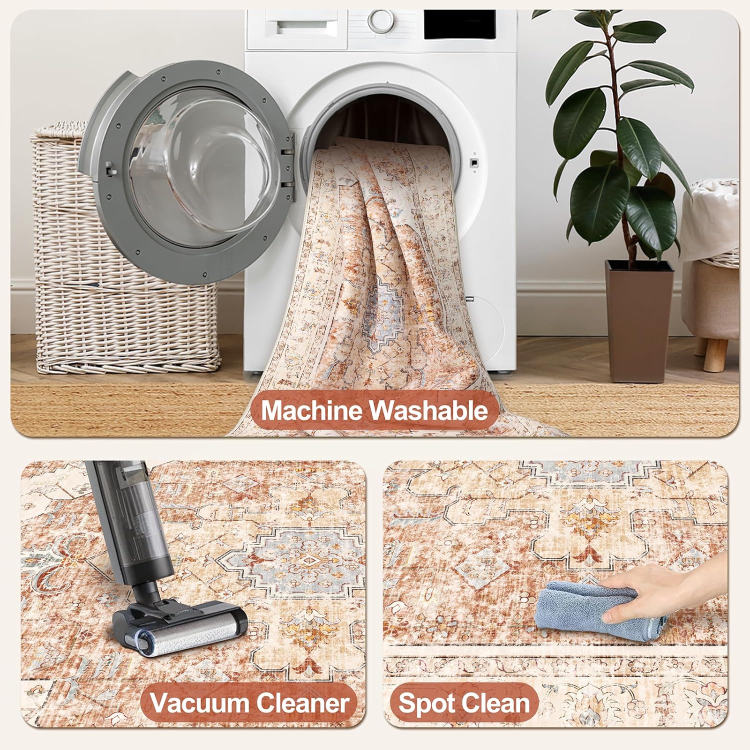 - 【Non-Slip Backing】Experience peace of mind with every step on our vintage area rug, featuring an innovative TPE non-slip rubber backing. Designed to keep your carpet securely anchored, it effortlessly holds its ground against movement and slippage. Provides safety and stability for high-traffic areas such as entrances or front doors, reducing the likelihood of people and pets slipping, making it easy to walk and play