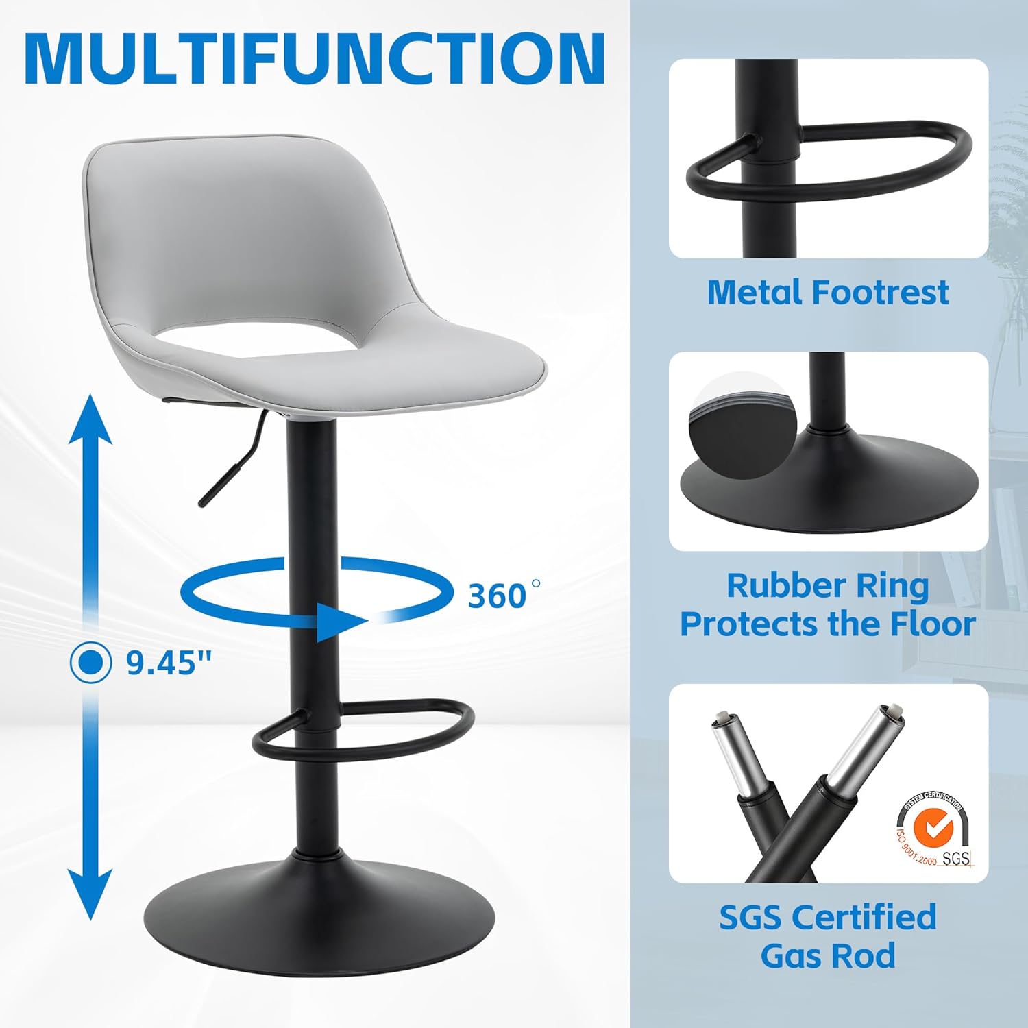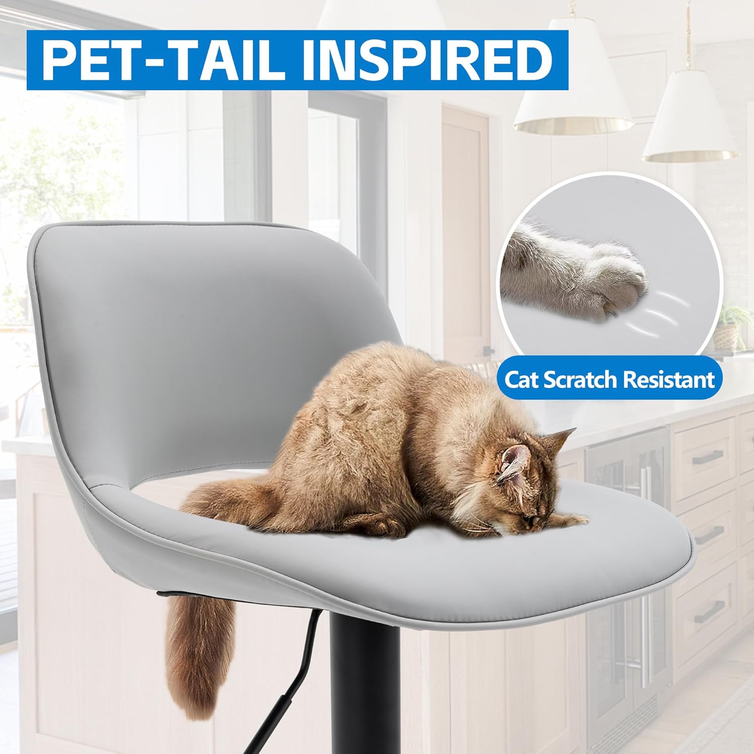 - 🐱【Adjustable & Swivel Function】The bar stool offers a 360° swivel and an adjustable seat height, allowing you to customize your sitting position for maximum comfort. Whether you're at the kitchen counter or the home bar, you can easily find the perfect height and angle to suit your needs.