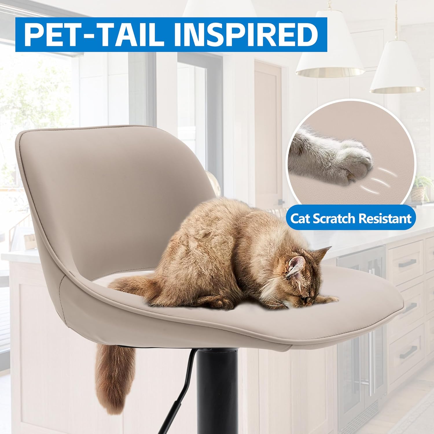 - 🐱【Ergonomic Comfort】Designed with a curved backrest and high-density sponge seat, this bar stool provides excellent ergonomic support and comfort. The gentle curve of the backrest supports your back, helping to reduce fatigue during long periods of sitting