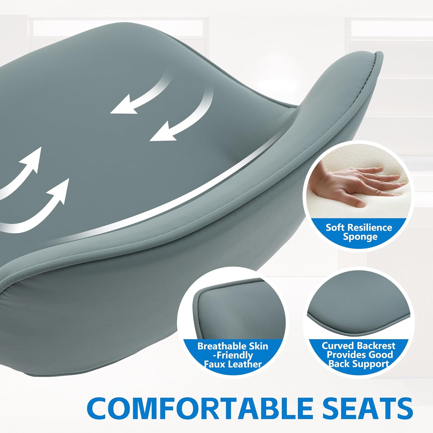 YOUNIKE Bar Stools Set of 2 Modern Swivel Barstools, Adjustable Counter Height Bar Stools Faux Leather Upholstered Counter Stools with Hollow Back for Kitchen Island, Greyish Green