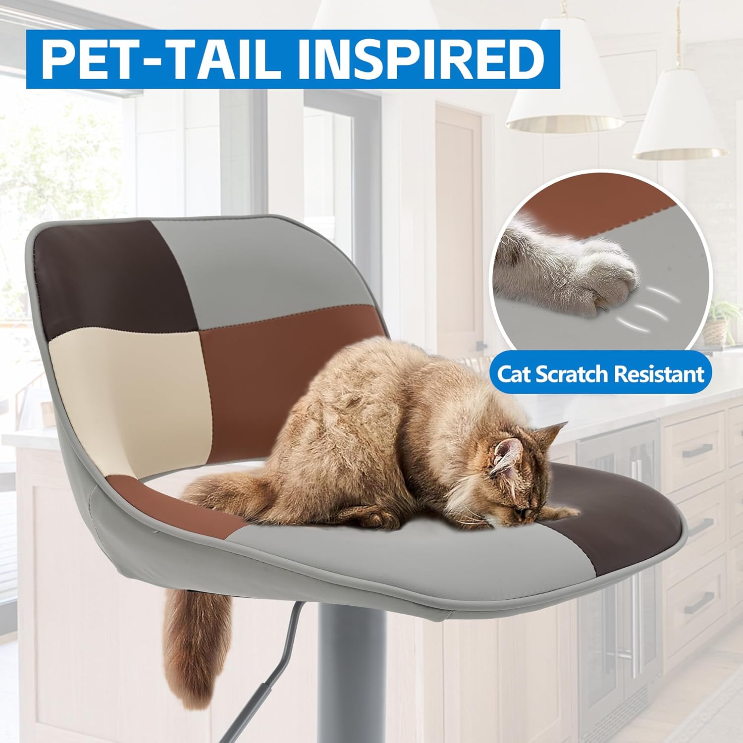- 🐱【Pet tail-Inspired Design】Our bar stool features a seat with a thoughtfully designed hole, inspired by the playful nature of a pet's tail.The stool is crafted from high-quality, scratch-resistant leather, offering protection against your pet's claws.These bar chairs feature an eye-catching color block design that enhances its stylish appeal.