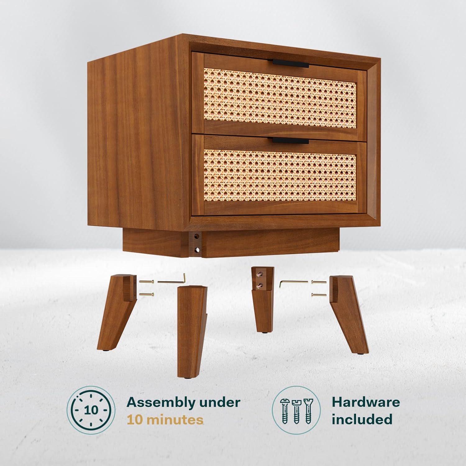 - STUNNING RATTAN NIGHTSTAND: The timeless design of our mid century modern nightstand can be easily incorporated into any decor; The solid wood nightstand is available in two elegant color options, adding a touch of class to your home