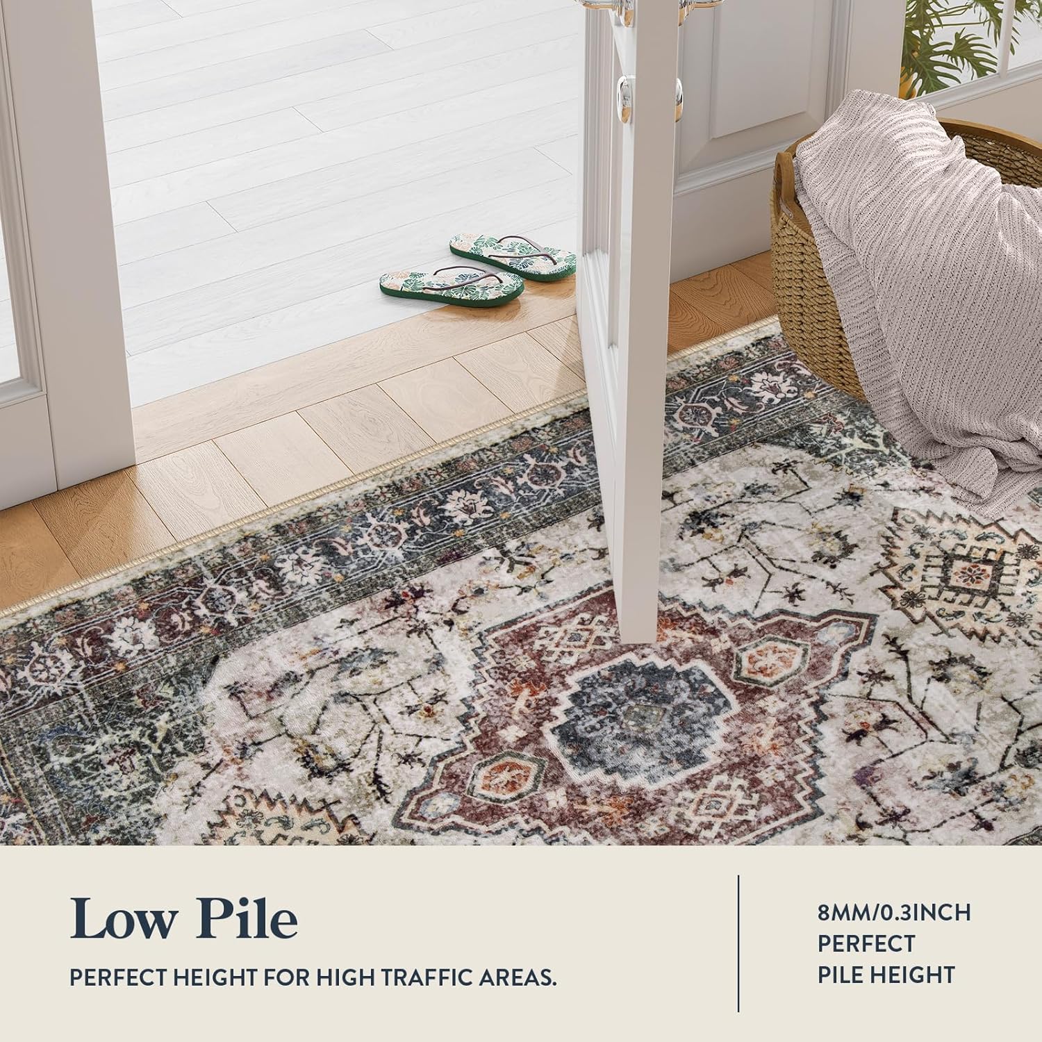 - Ultra Soft and Safe: The vintage rug is soft and good to touch- walking barefoot is like stepping on clouds, keeping the soles of your feet warm and relaxed. The ultra-thin design was easily placed under furniture without creating a tripping hazard