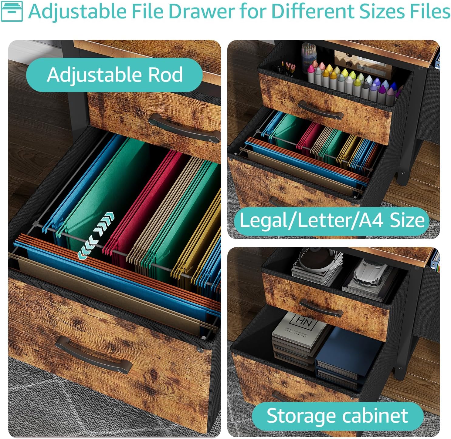 Lufeiya Computer Desk with Fabric File Drawers Cabinet, 57 Inch Home Office Desks with Filing Cabinet Printer Stand for Small Space, Study Writing Table PC Desks for Bedroom, Brown