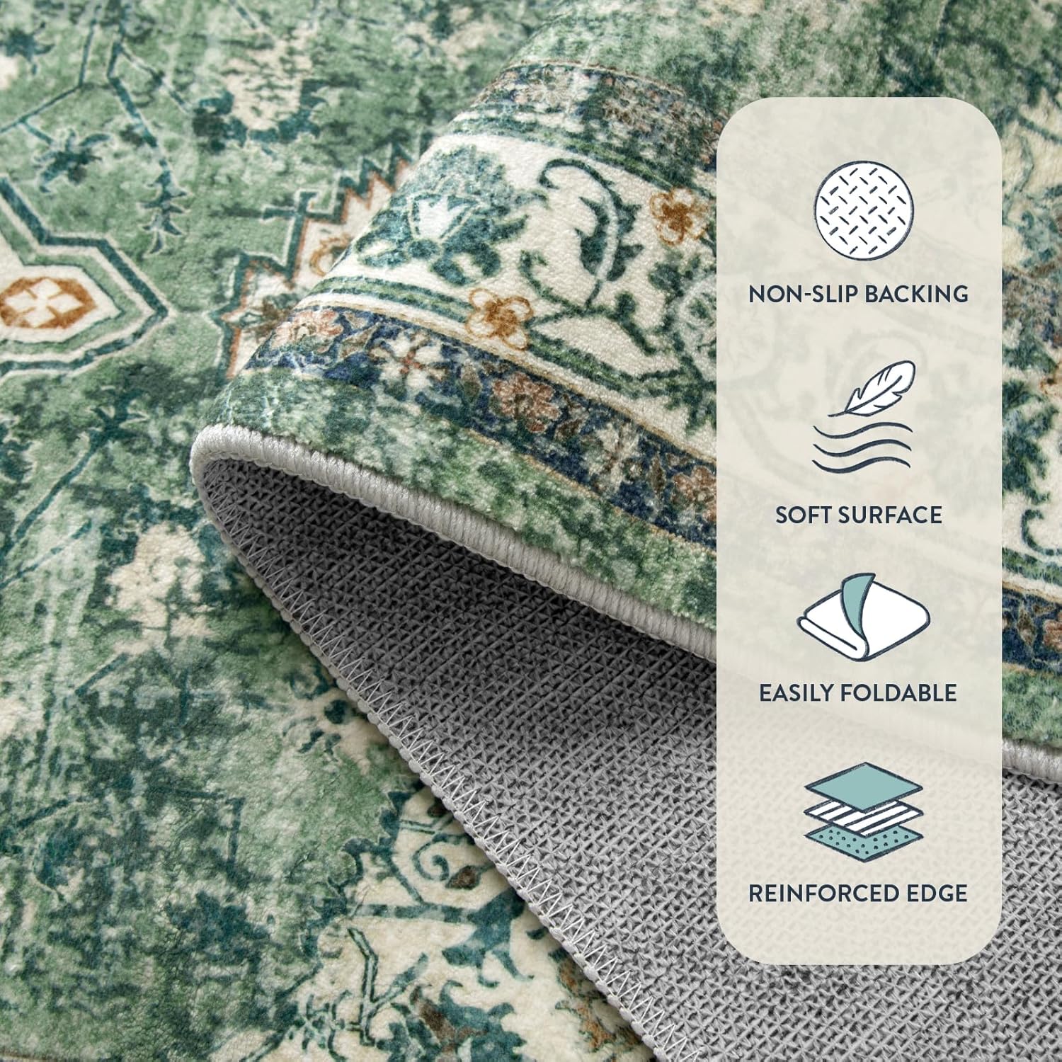 Lahome Oriental Hallway Runner Rug, 2.5x8 Kitchen Runner Non Slip Ultra-Thin, Soft Washable Hallway Rug Non Shedding Long Carpet for Entryway Laundry Room Bathroom, Green/Multi
