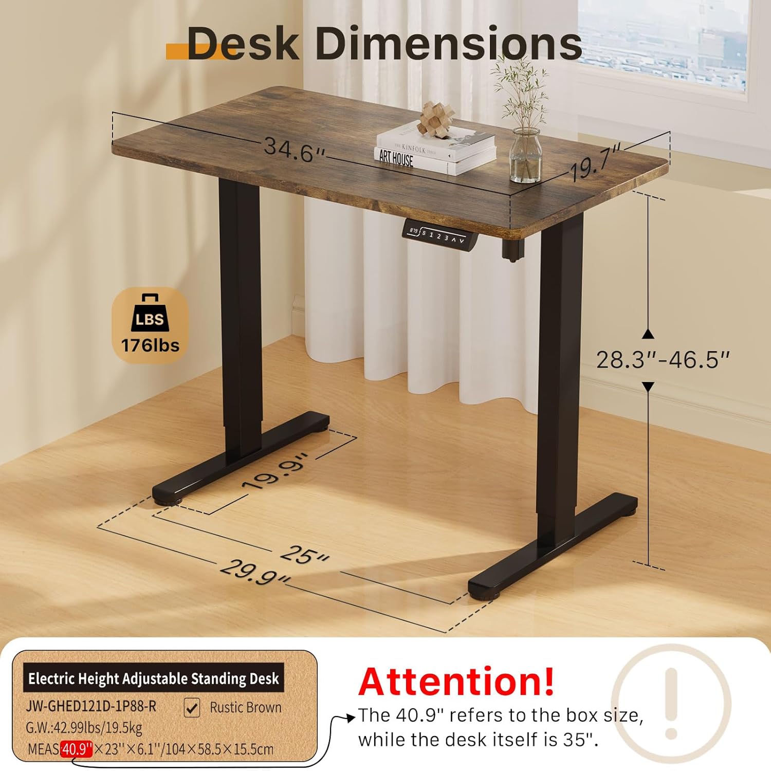 JOY worker Small Electric Standing Desk, 35" x 20" Whole Piece Height Adjustable Desk with Memory Controller, Grey Sit to Stand Desk Workstation for Home Office, Rustic