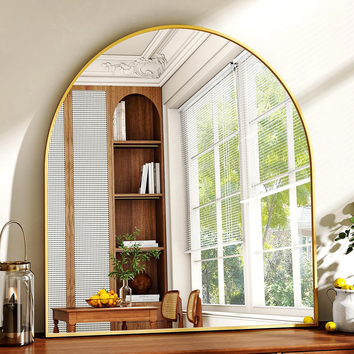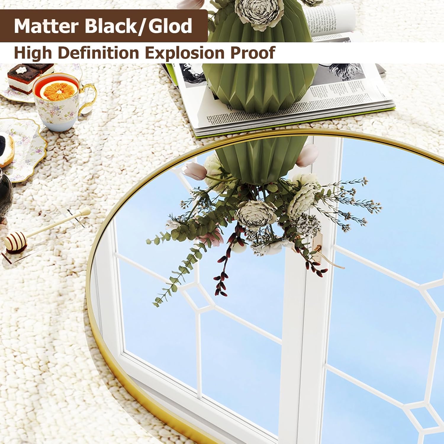 - ShatterVueTempered Glass: The lenses of the bathroom mirrors are made of high-definition and ShatterVue Tempered Glass. Through this arched mirror for wall, you can see a complete high-definition mirror that is indistinguishable from the real world. Moreover, even if our gold mantle mirror for bathroom is damaged by external impact, the glass of the dresser mirrors will not splash, hurting others, and reducing safety hazards to a certain extent