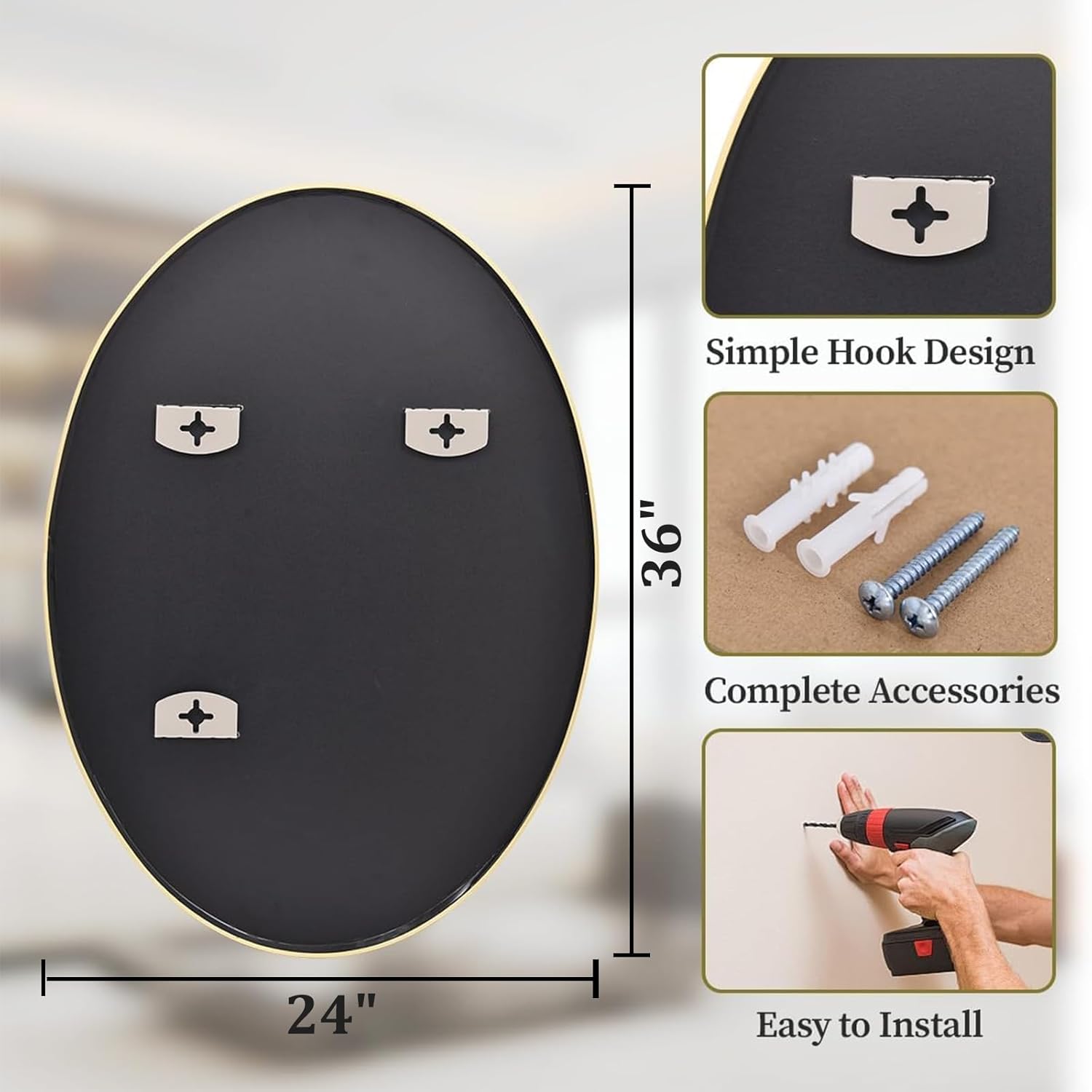 Koonmi Gold Oval Bathroom Mirror, 24"x36" Bathroom Vanity Mirror, Oval Mirror for Bedroom Living Room Entryway, Hangs Horizontal or Vertical
