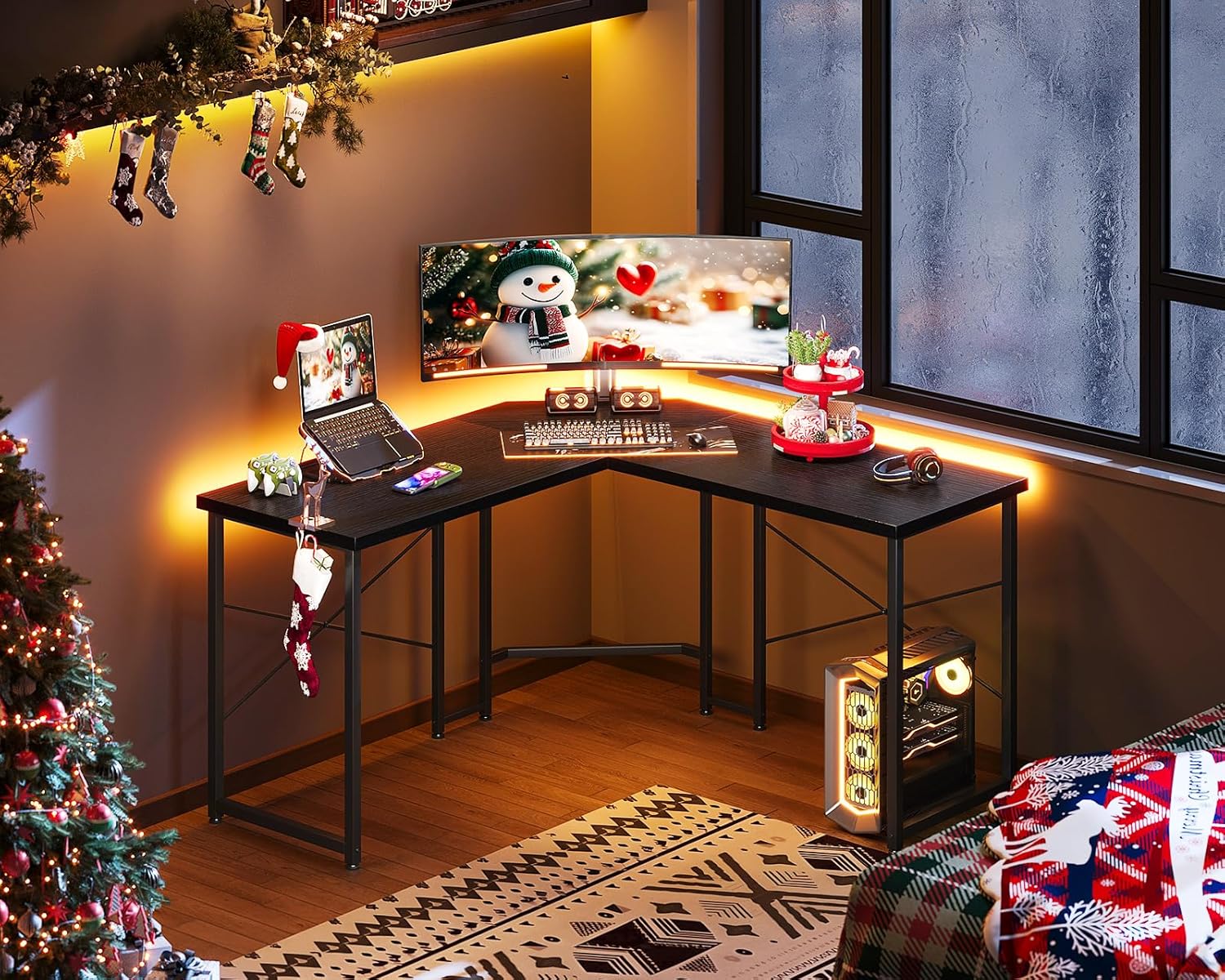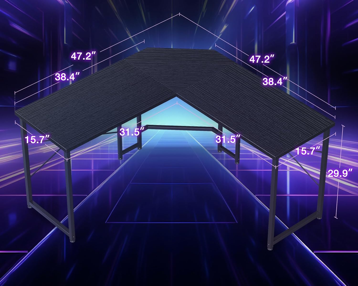 Casaottima 47 inch L Shaped Gaming Desk, Corner Desk Gaming Table for Home Office, Computer Desk Sturdy Writing Workstation for Small Space, Easy to Assemble, Black