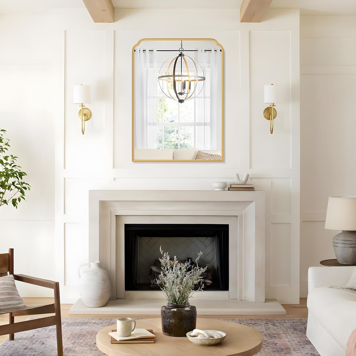 - 【A Unique Elegant-Looking Mirror 】:The gold bathroom mirror, overall design and the sleekness of the curves in the frame and it adds a classiness as opposed to a boring straight square mirror. A very versatile mirror that will raise the level of decor anywhere in the house. The rounded corners mirror is classic and will never go out of style.