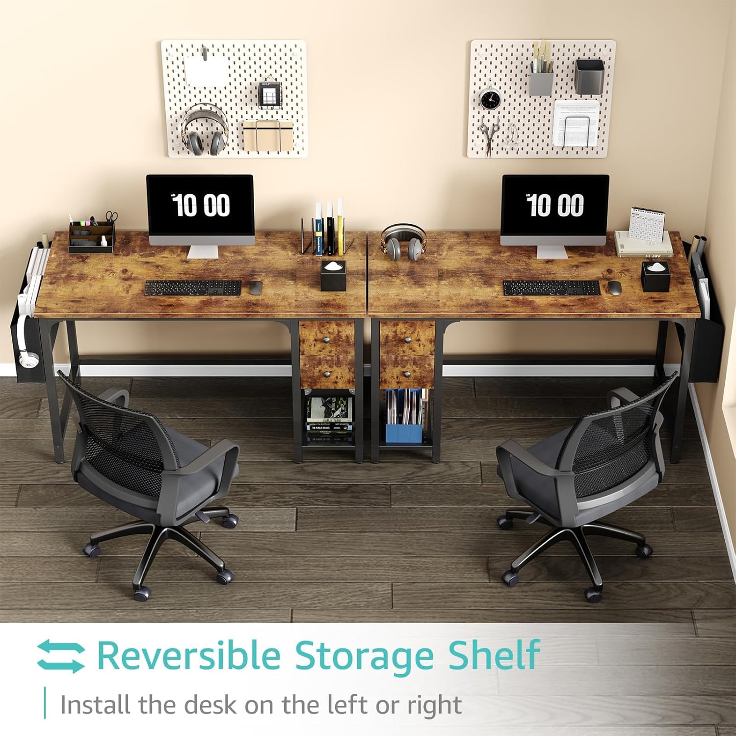 - Working Desk with Ample Storage Options: Computer desk with 2 ππππ§ππ πΏπ§ππ¬ππ§π¨ and 1 storage shelves for super large storage space, you can try this two installation methods (left or right). It also have 1 side storage bag, perfect for holding magazines, notebooks, bags or small electronics