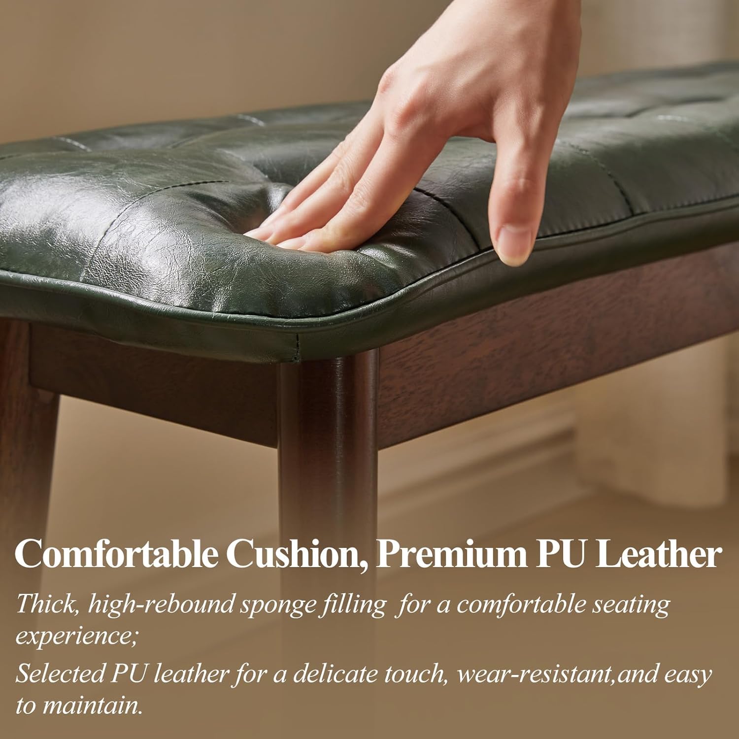 - Suitable Size and Color: The size of this dining room bench is 47.24" L x 12.6" W x 17.72" H (120x32x45 cm). It is available in two colors: green and beige. The elegant and versatile style fits perfectly not only as an end-of-bed bench but also as a dining bench or an entryway bench, complementing other items around it.