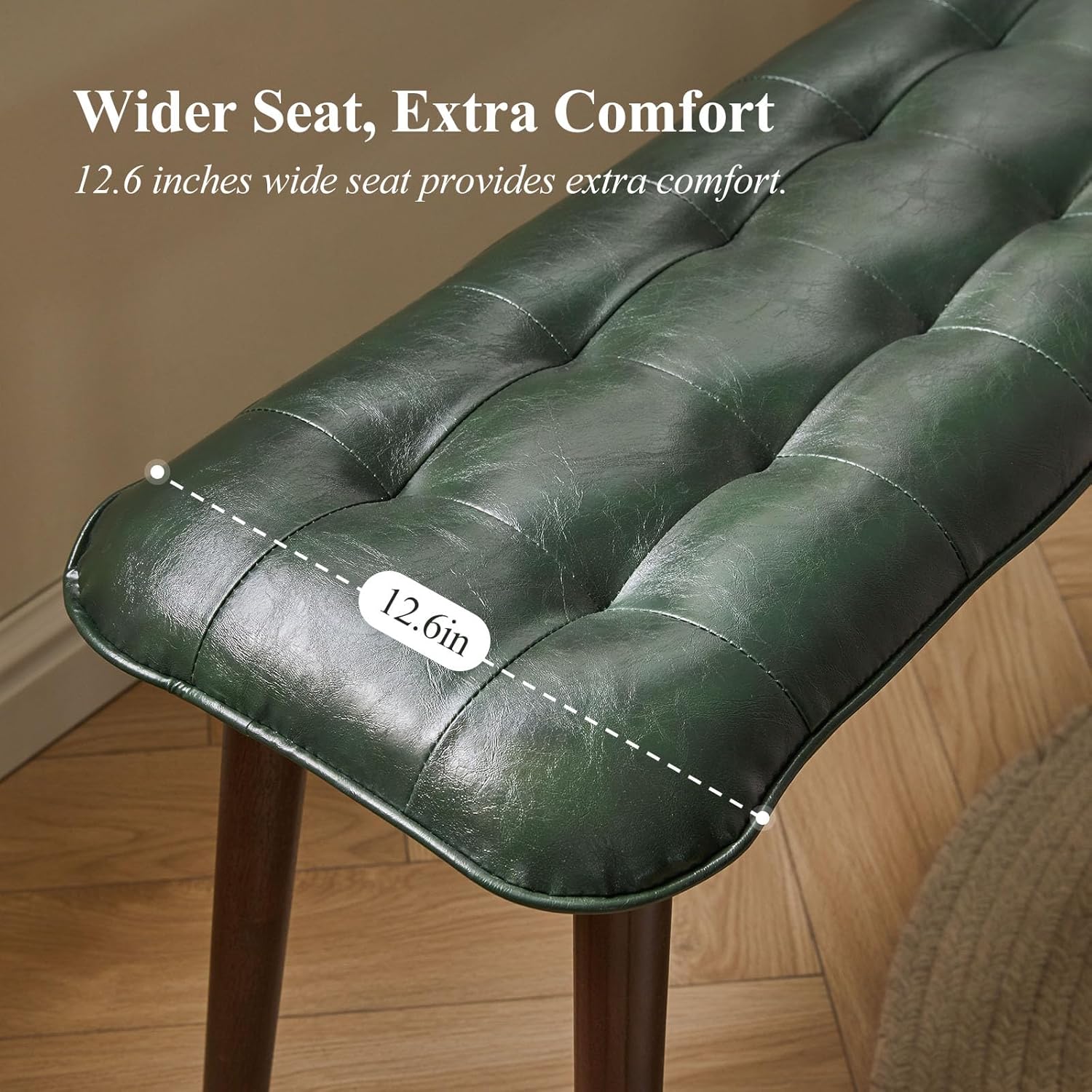 Entryway Bench, Solid Wood Dining Bench, Midcentury End of Bed Bench with PU Leather Padded Seat, Bedroom Bench, 47.24" L x 12.6" W x 17.72" H (Green)