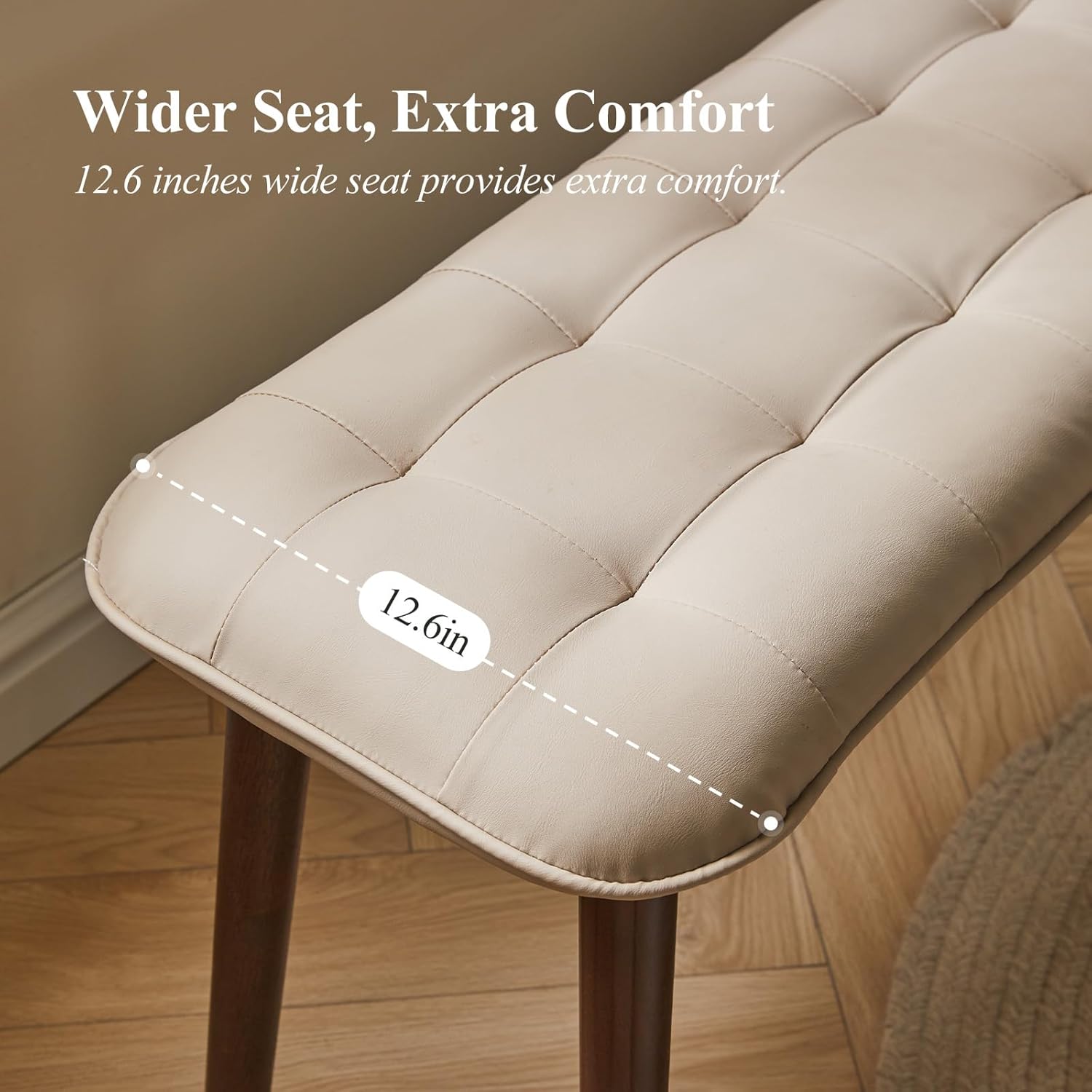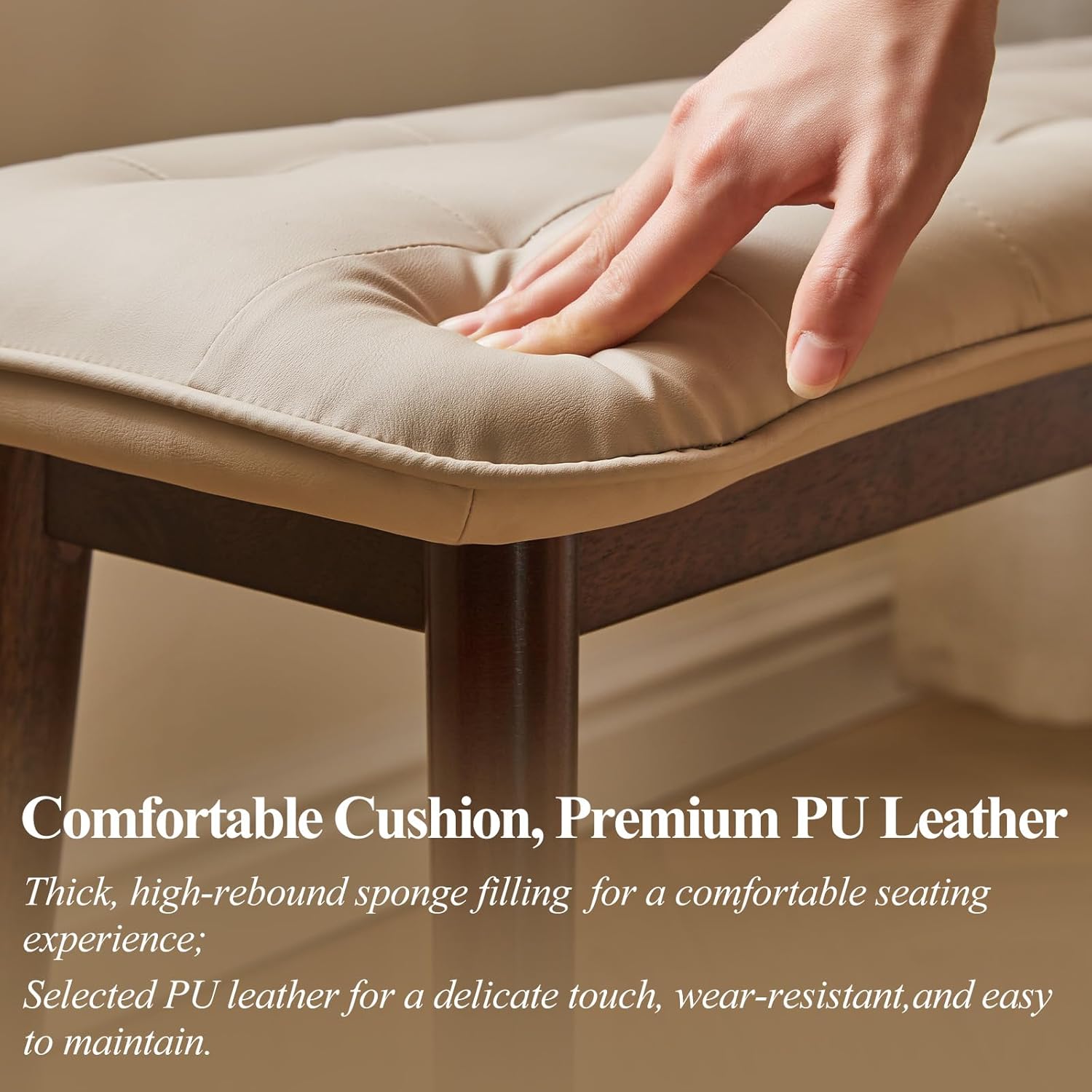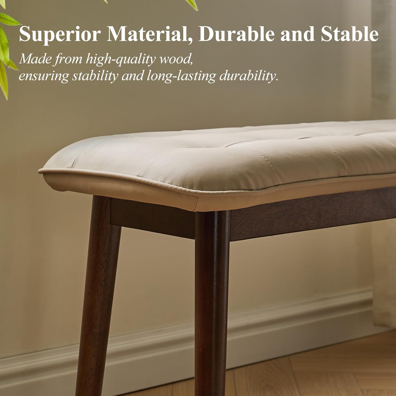 Entryway Bench, Solid Wood Dining Bench, Midcentury End of Bed Bench with PU Leather Padded Seat, Bedroom Bench, 47.24" L x 12.6" W x 17.72" H (Beige)
