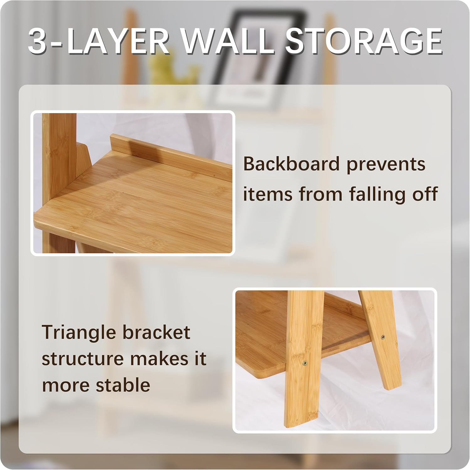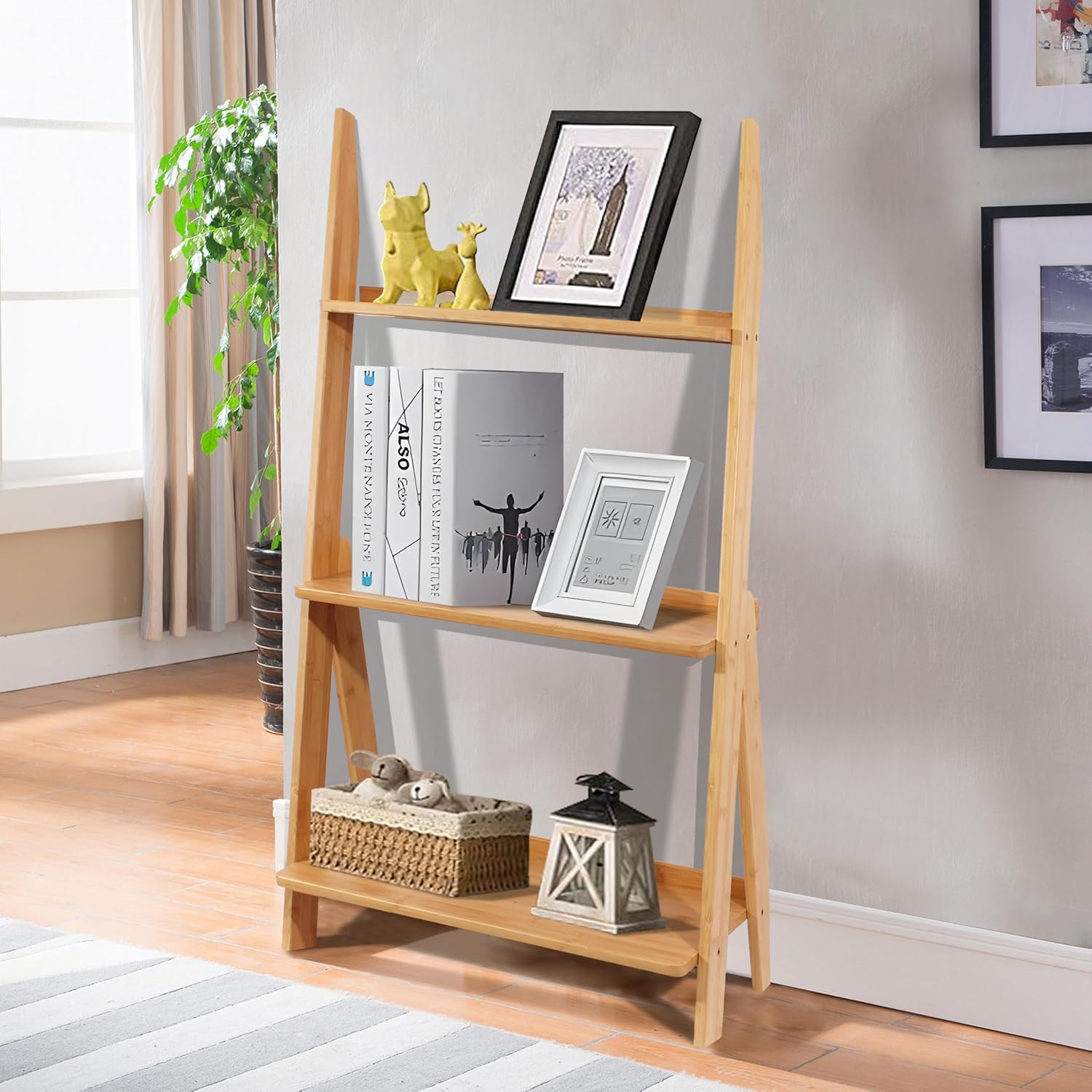 - 🪅【3-Tier Bamboo Ladder Shelf】: This versatile bamboo ladder shelf features 3 shelves of varying sizes, catering to items of different dimensions. It offers ample storage space to keep your everyday essentials and display decorations neatly organized. Each shelf is equipped with a protective barrier, ensuring items remain secure without the risk of falling. Ideal for books, decorations, family picture frames, alarm clocks, certificates, plants, and more.