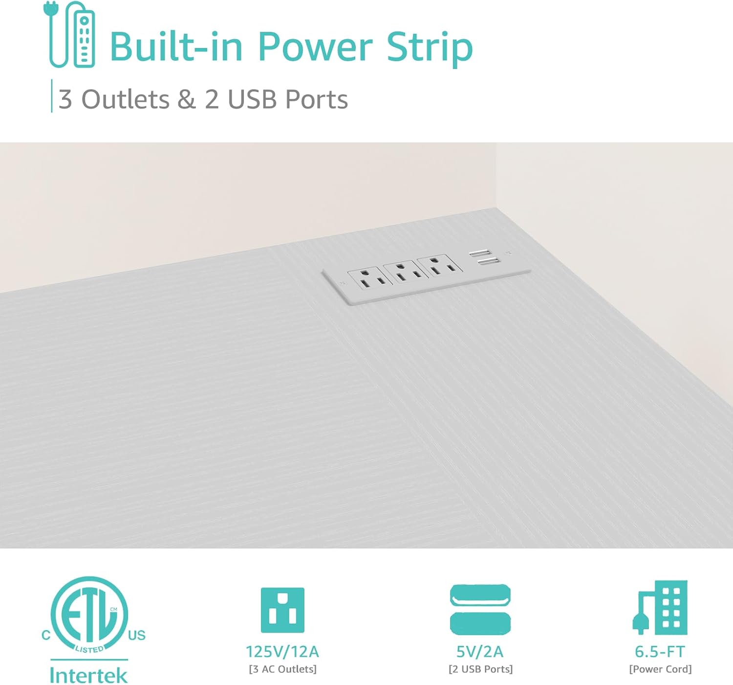- Safety Multifunctional Power Strip: The computer desk includes a built-in power strip with 3 power outlets & 2 USB charging ports for your computer, monitor, gaming gear, pad, phone and other electronic devices. The desk is USPTO Patent Approved(Patent Number: 29931626)