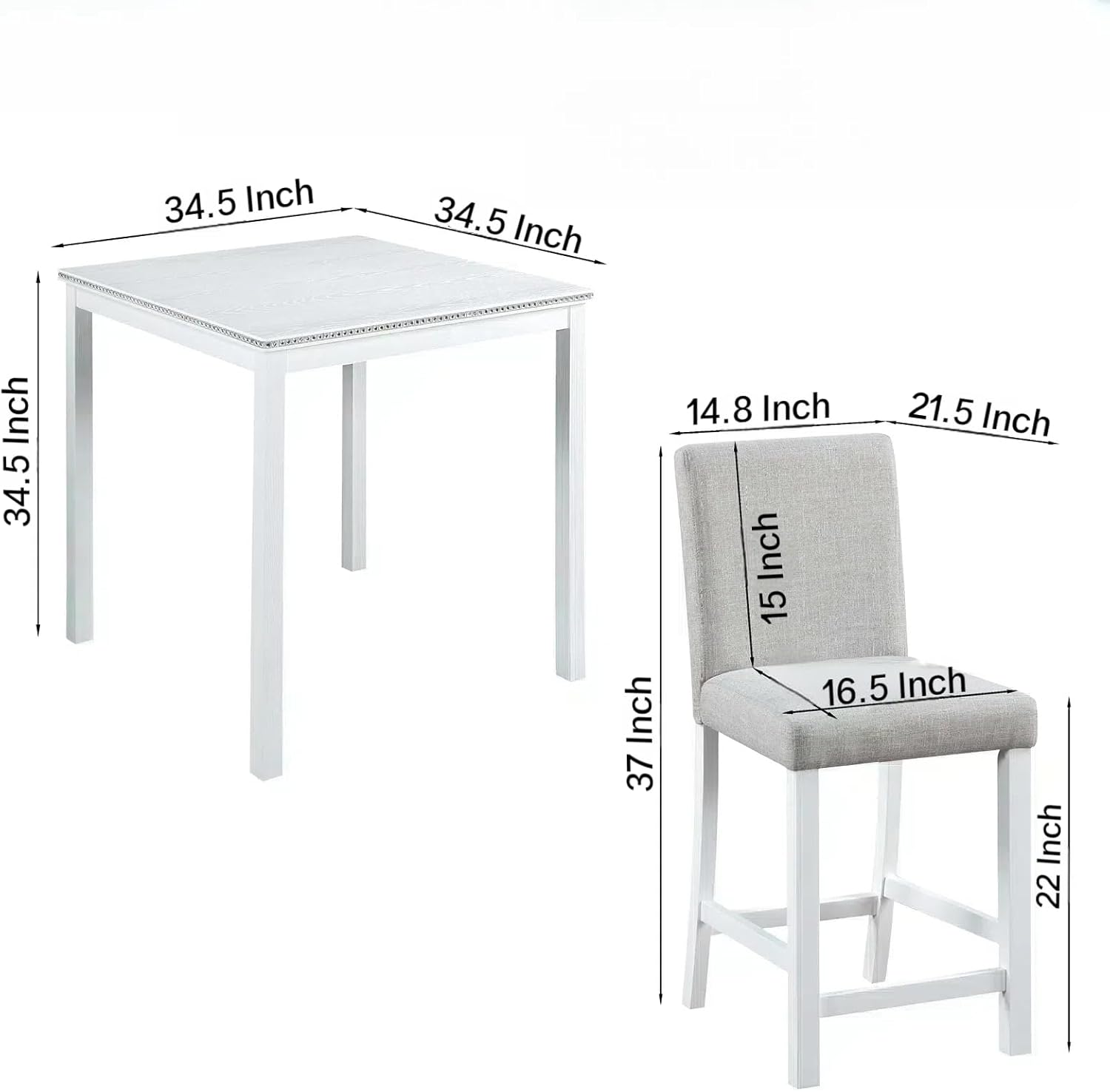 5PCS Modern White Counter Height Dining Table Set, Square Table with Crystal Decoration and 4 Upholstered Chairs for Kitchen, Dining Room