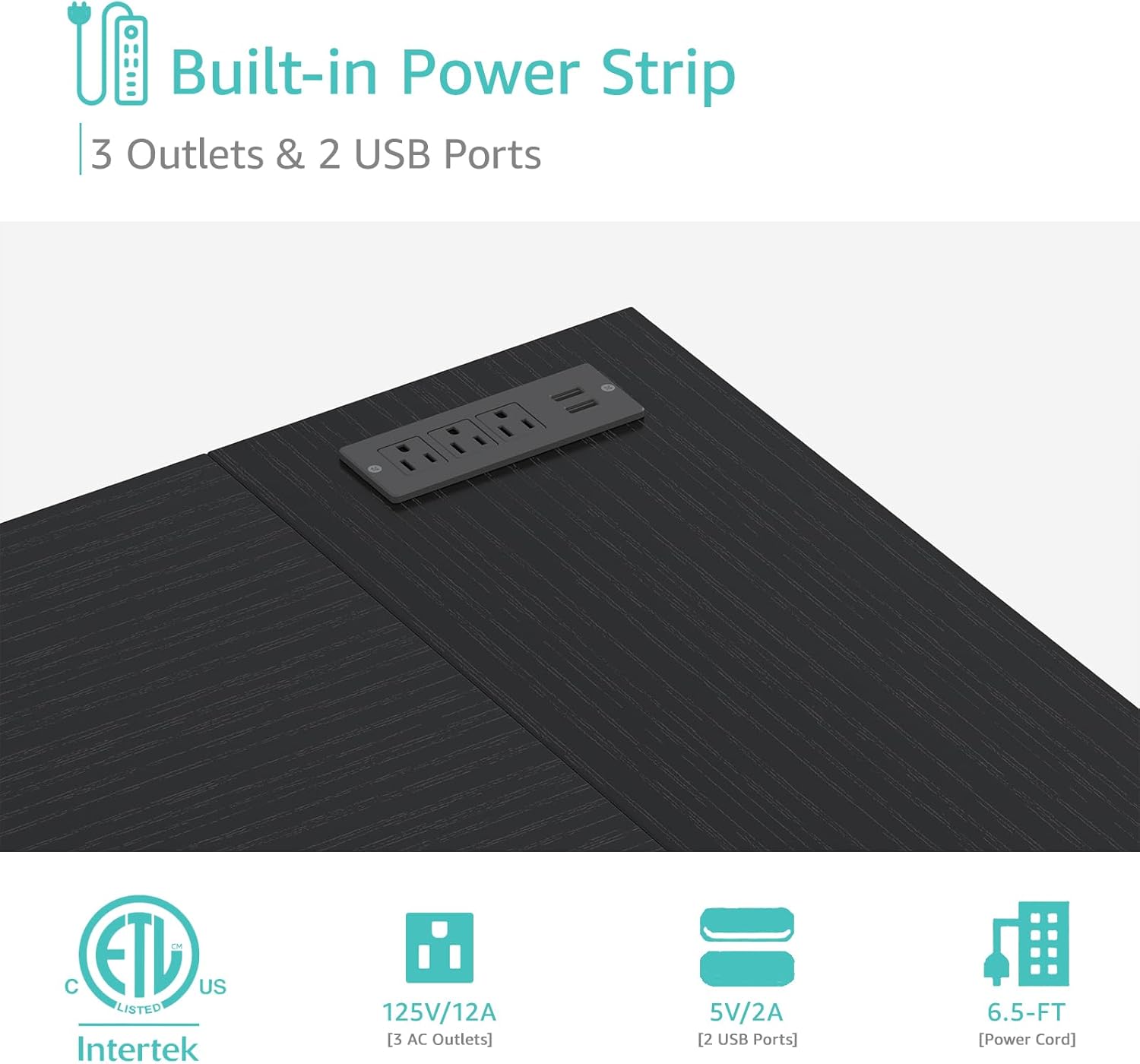 - Safety Multifunctional Power Strip: The computer desk includes a built-in power strip with 3 power outlets & 2 USB charging ports for your computer, monitor, gaming gear, pad, phone and other electronic devices. The desk is USPTO Patent Approved(Patent Number: 29931626)