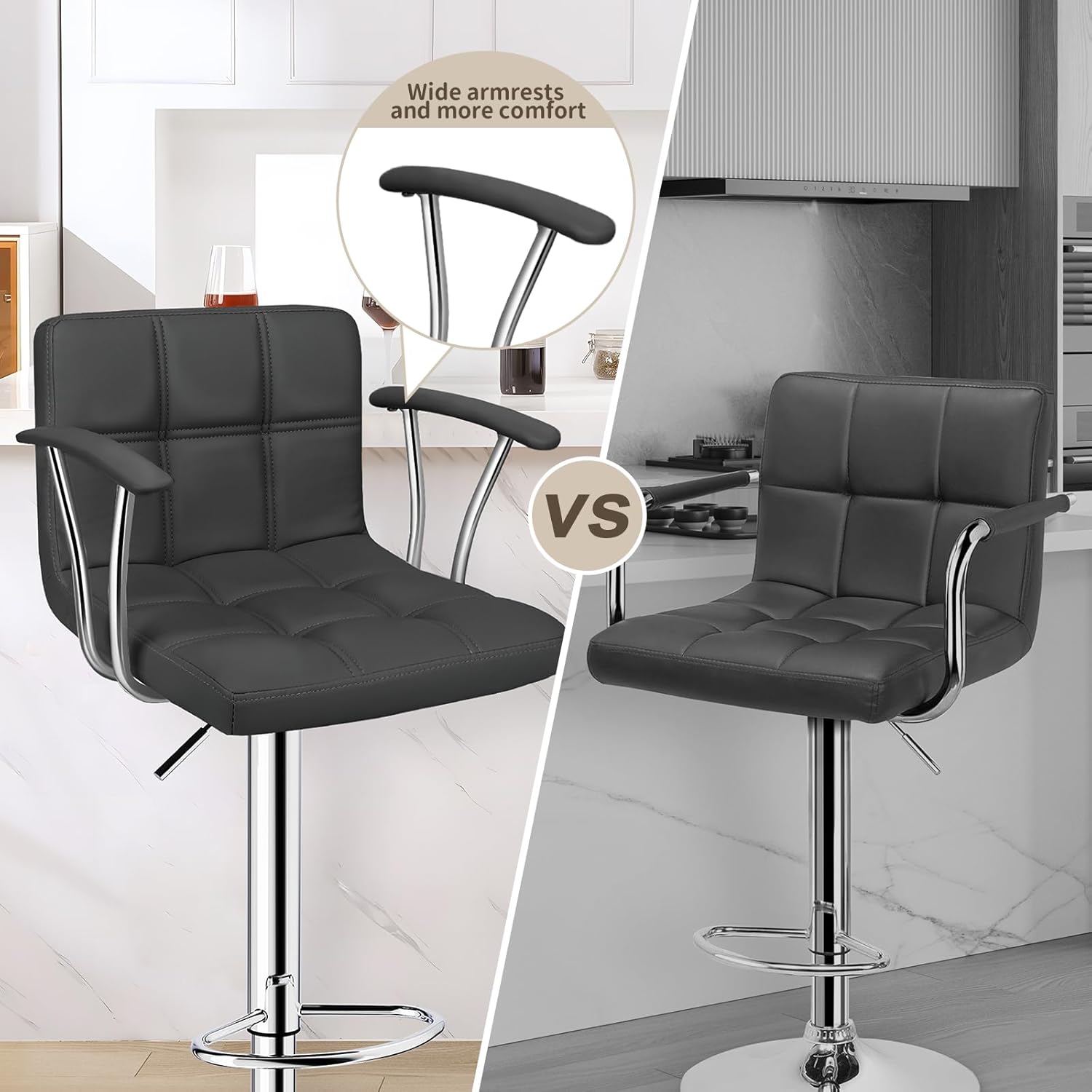 Bar Stools Set of 2,Armrest Adjustable Swivel Barstools with Back,Double Needle PU Leather Counter Height Bar Stools for Kitchen Island, Grey