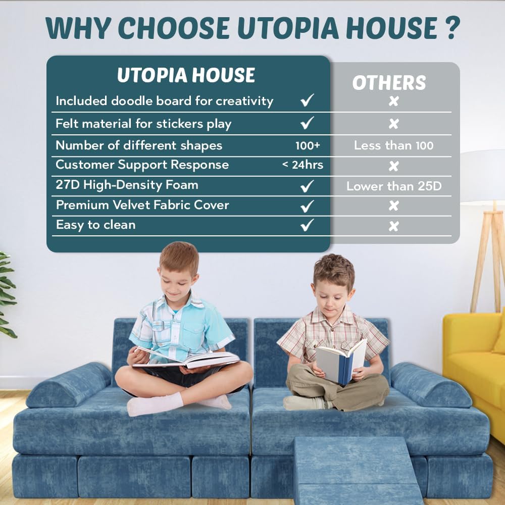 - A Couch with Endless Possibilities: Can one toy spark a hundred ideas? Absolutely. With 8 different shapes, this kids modular couch lets your child create something new every day, from rocket ships to slides, castles to hideouts, it offers 100+ fun configurations, giving kids the freedom to build, explore, and enjoy hours of screen-free fun.