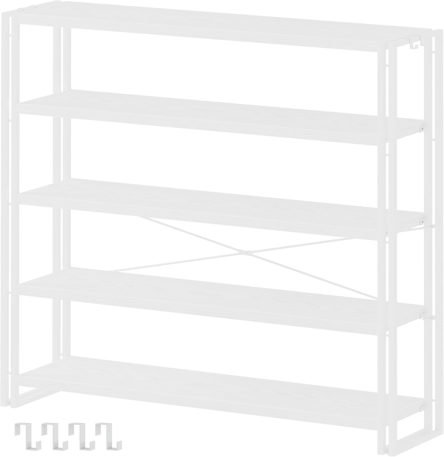 HCHQHS Bookshelf, 5-Tier Industrial Bookcase, White Open Book Shelf, Freestanding Tall Bookshelves with Metal Frame