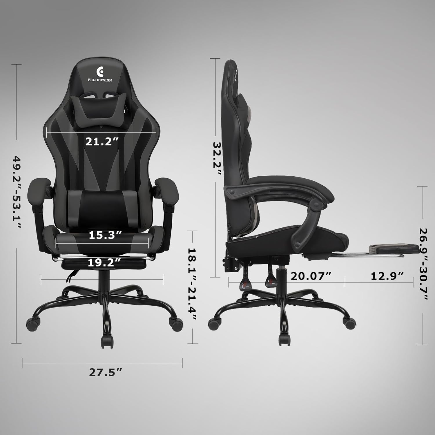 - [ Dimension ] The dimension of the gaming chair is about 19.3"L x 20"D x 18.9"-22.8H" (from floor to seat cushion)