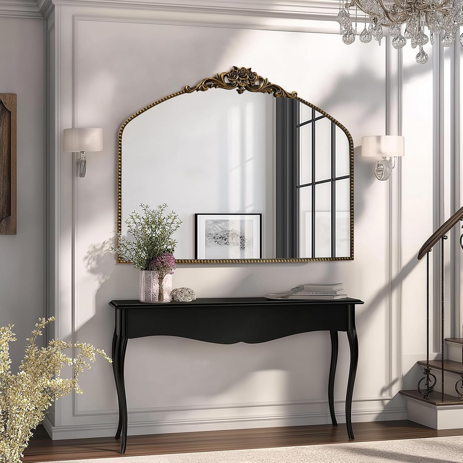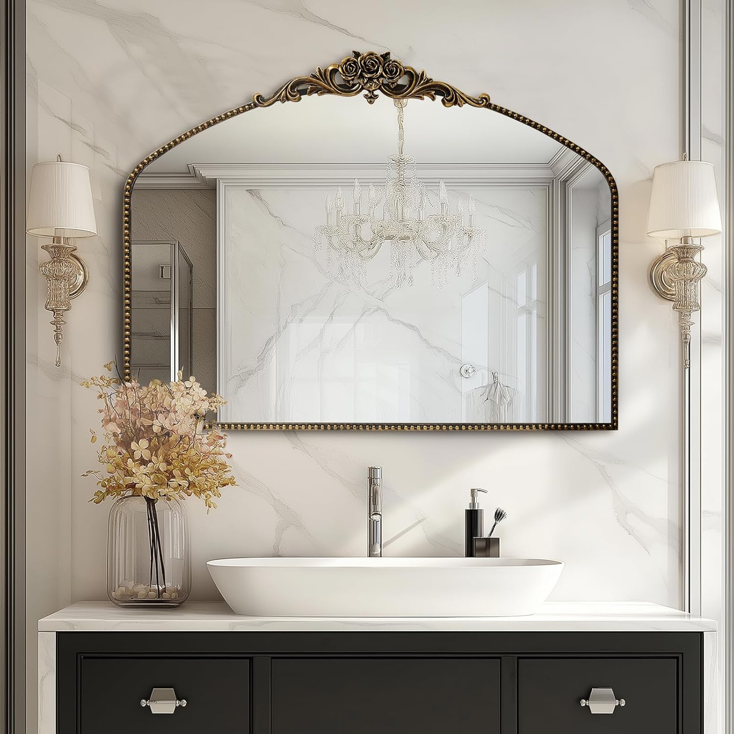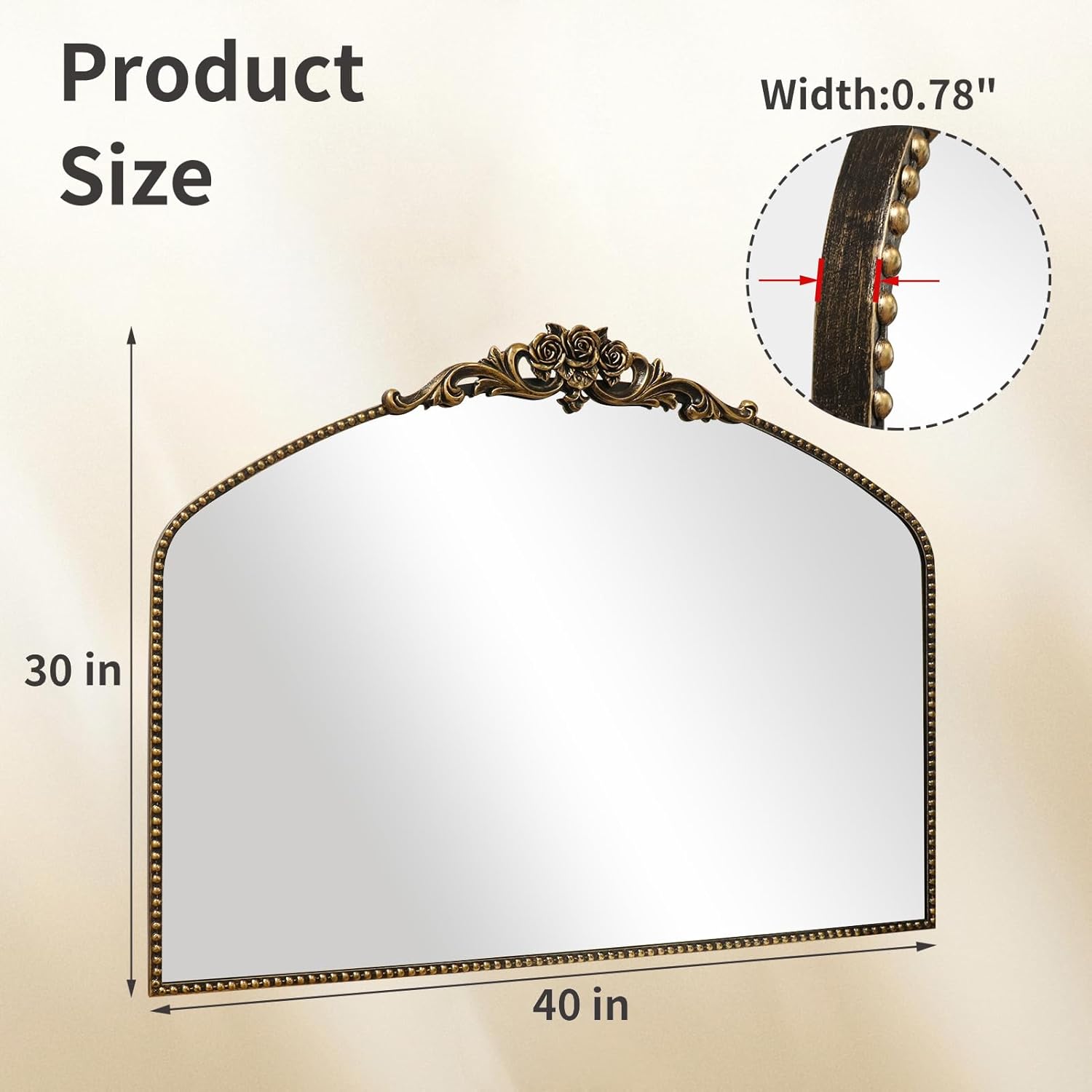 - 【HIGH QUALITY WALL MIRROR】The 40 x 30 inch vintage mirror frame is made of high quality metal, cast iron vintage engraved patterns, hand polished to make the vintage arched large wall mirror smooth and flat. The metal frame not only adds to the aesthetics, but is also strong, rust-resistant, and resists warping, making the arched wall mirror surface less prone to damage.