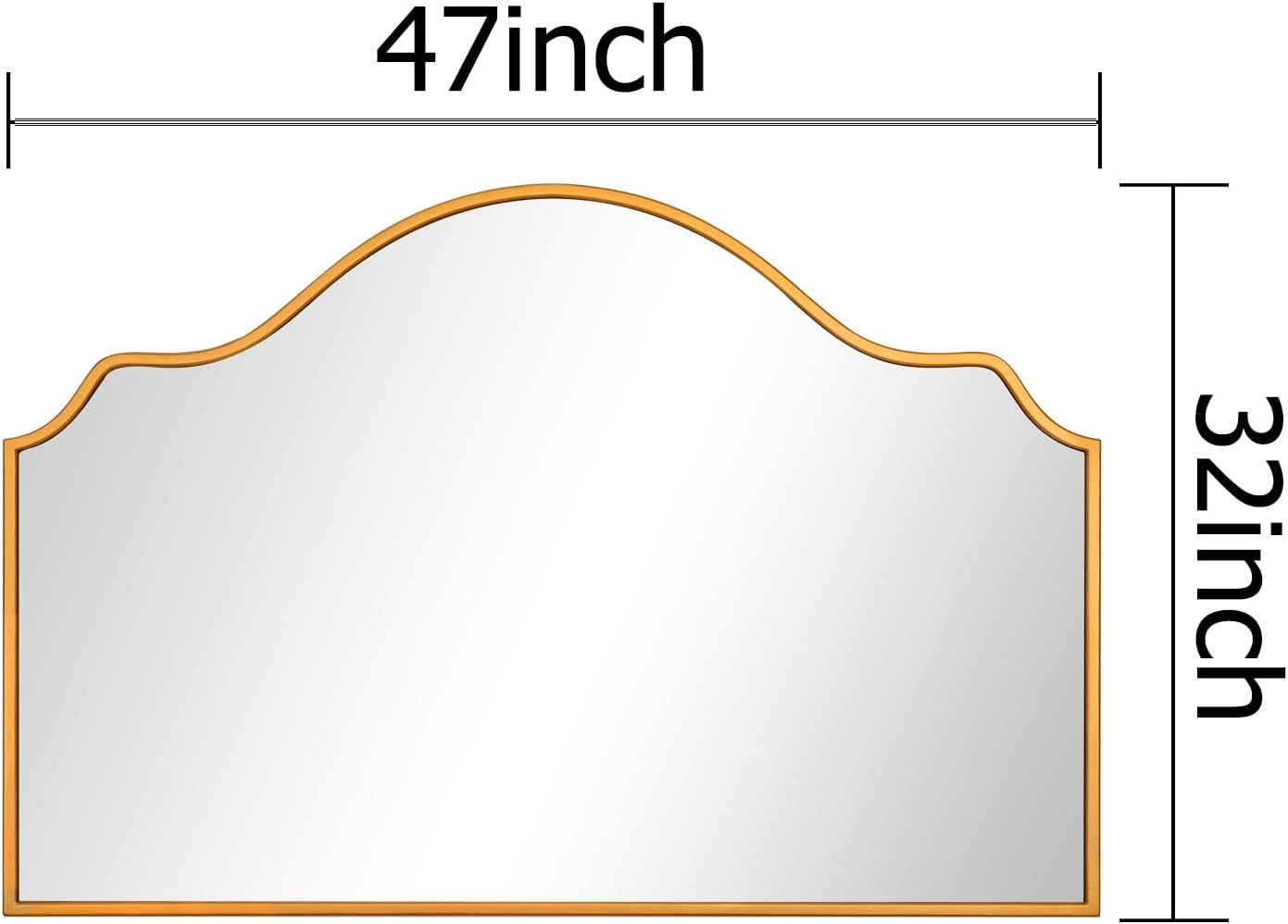 Chende Large Gold Mirror with Arched Top, 47" x 32" Modern Living Mirror for Wall, Modern Decorative Mirror with Wooden Frame for Entryway, Fireplace, Dining Room