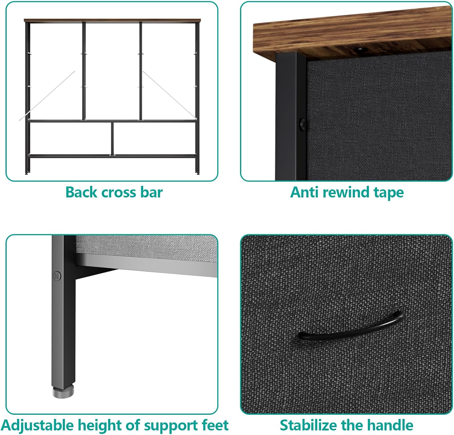 - 【Structural stability】Sturdy steel frame and durable wooden waterproof countertop provide the fabric dresser reliable strength and stability. The wood top is easy to clean, handy to place picture, mirror, clock, magazines even tv etc. Adjustable feet on the bottom adjust balance and protect the floor from scratches.