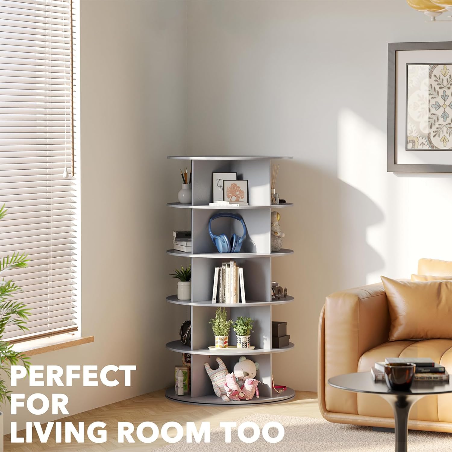 - 5-TIER GRAY SHOE DISPLAY HOLDER - Keep your home clean and keep track of your shoes better with this spinning shoe rack tower; Makes every shoe visible and save so much of your room closet storage space