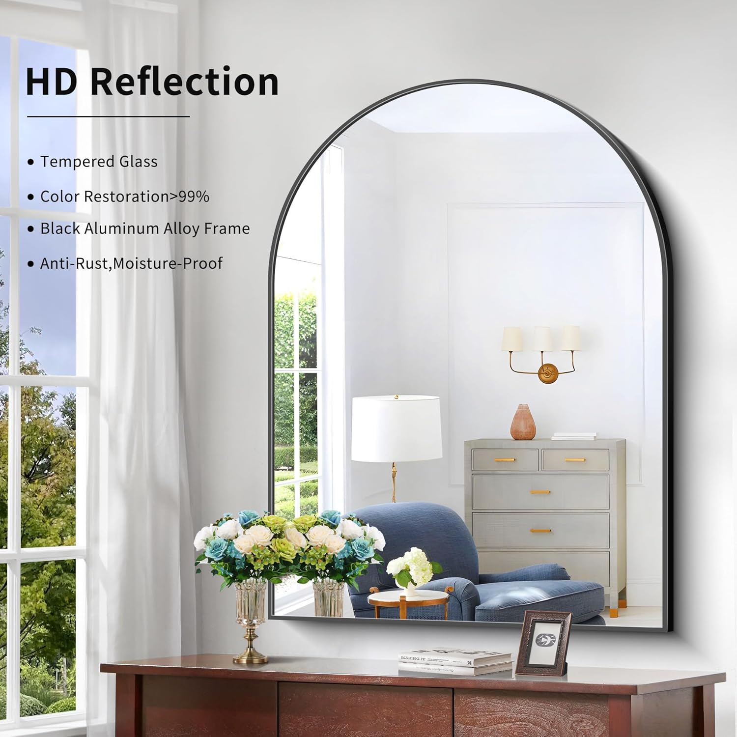 - HD MIRROR: Bathroom top arch mirror is made of premium glass, the reflection is clear and real, no distortion, which gives you a natural visual experience, and will also increase the light and space in your room.