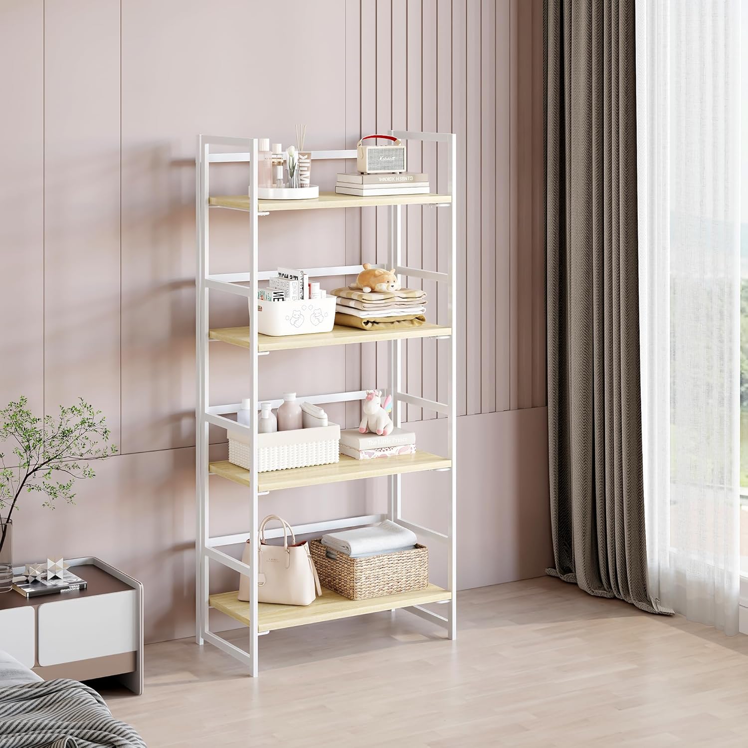 BHG Vintage Multifunctional Folding Bookshelf, No-Assembly Plant Stand Storage Rack Shelves for Home Office (White, 4-Tier)