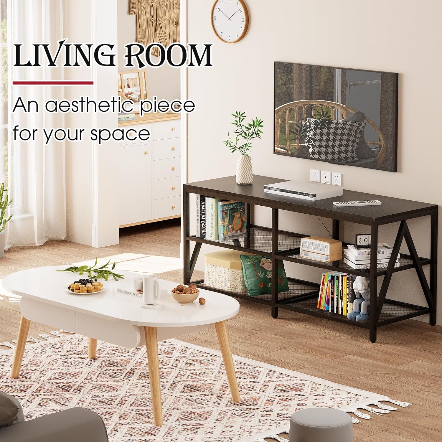 - 【Spacious & Cool】Dimensions: 43"L×15.75W"×19.69"H (110×40×50 cm), weight capacity of 150 lbs. The metal-grid shelves enhance airflow to avoid electronics overheating