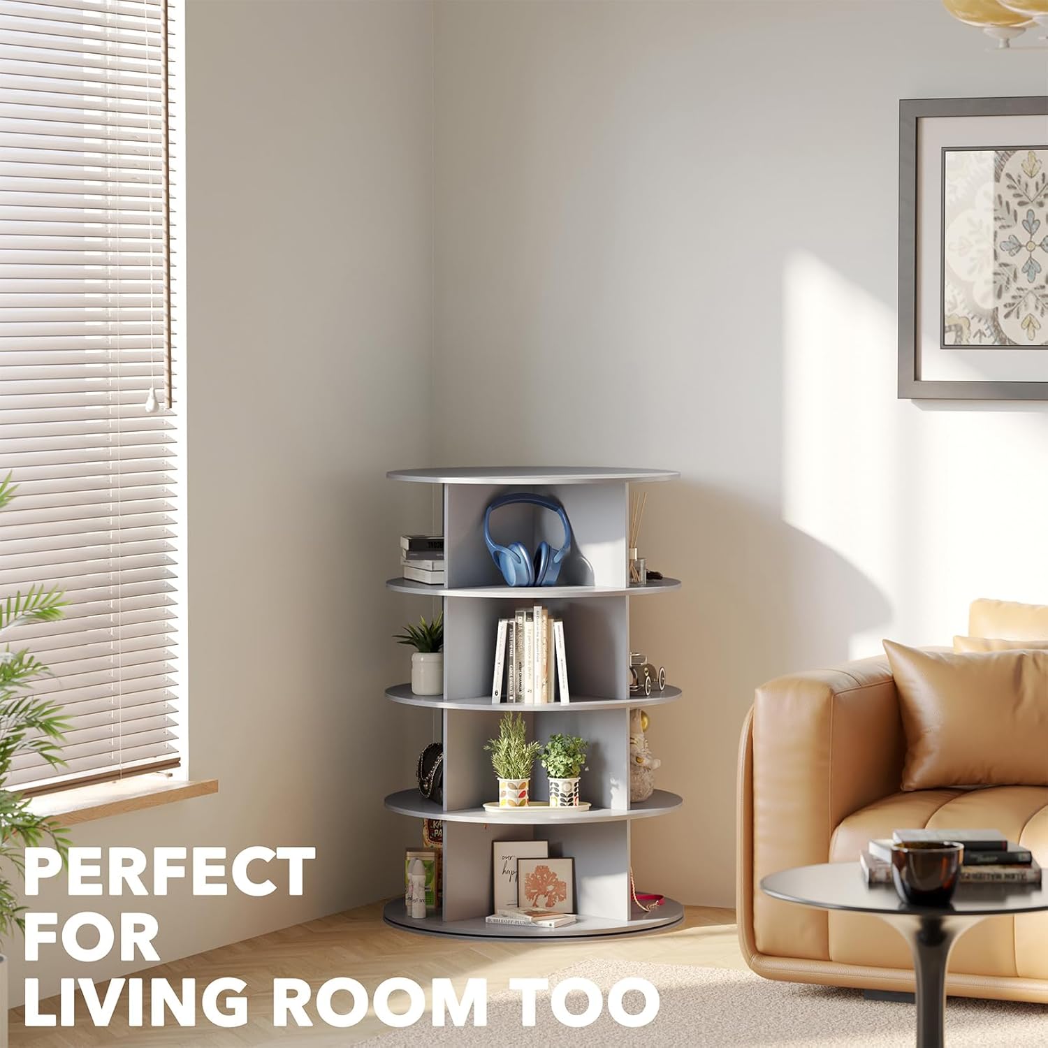 - 4-TIER GRAY SHOE DISPLAY HOLDER - Keep your home clean and keep track of your shoes better with this spinning shoe rack tower; Makes every shoe visible and save so much of your room closet storage space