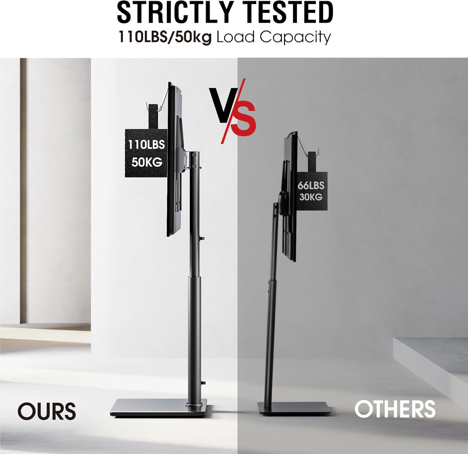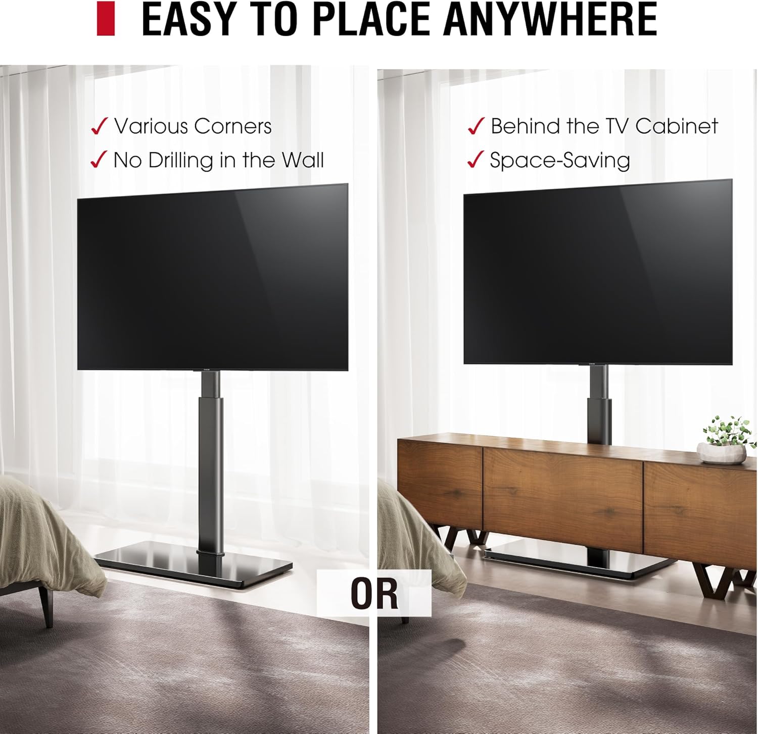 - 【10-Step Height Adjustment】- Tailor your viewing comfort with our 10-step height adjustment from 51.1 to 58.8 inches base to the top, allowing you to find the perfect viewing angle for any room setup. Whether you're in a cozy bedroom or a spacious living area, this extra tall floor TV stand ensures your TV is always at the ideal height.