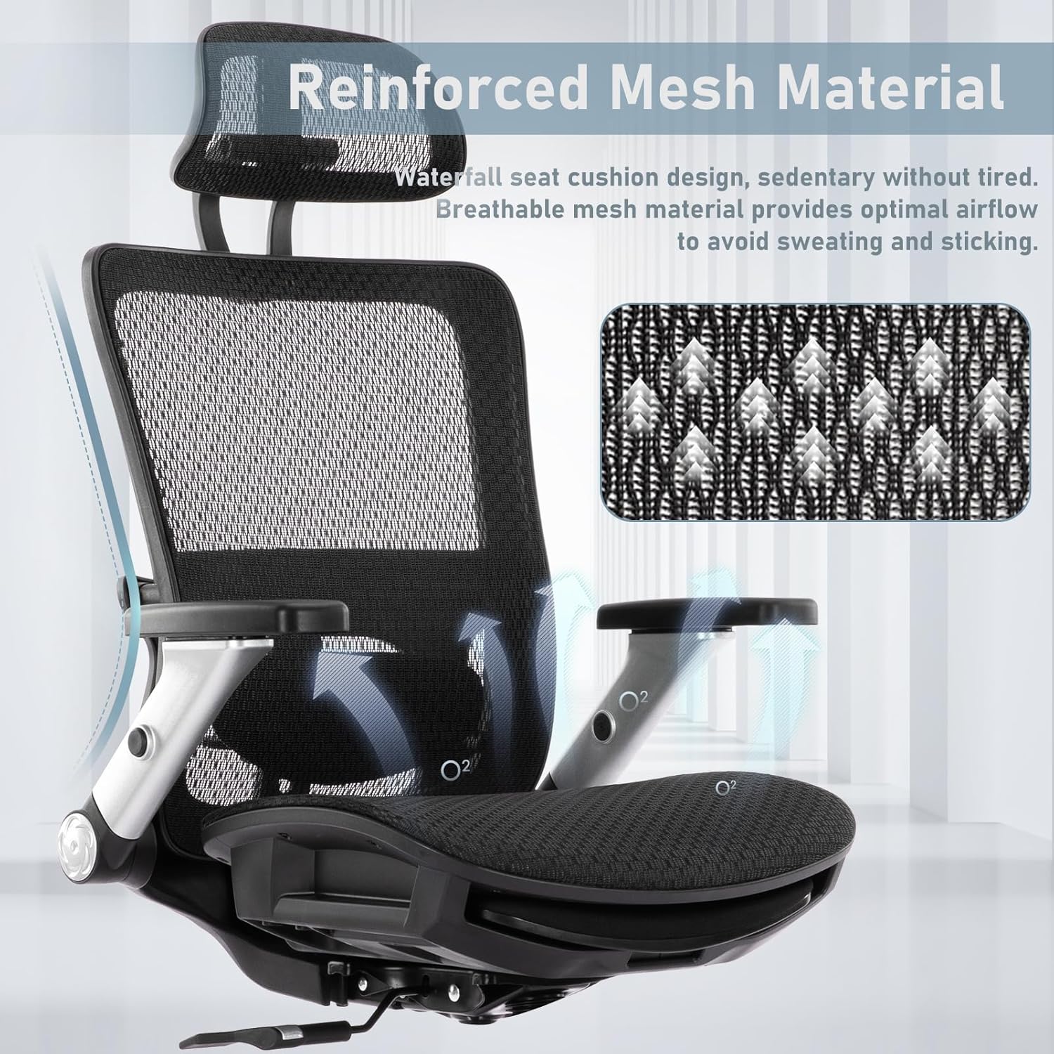 COLAMY Executive Mesh Office Chair with Footrest, Ergonomic Chair High Back with Adjustable Lumbar Support, Computer Desk Chair for Office/Work-Black