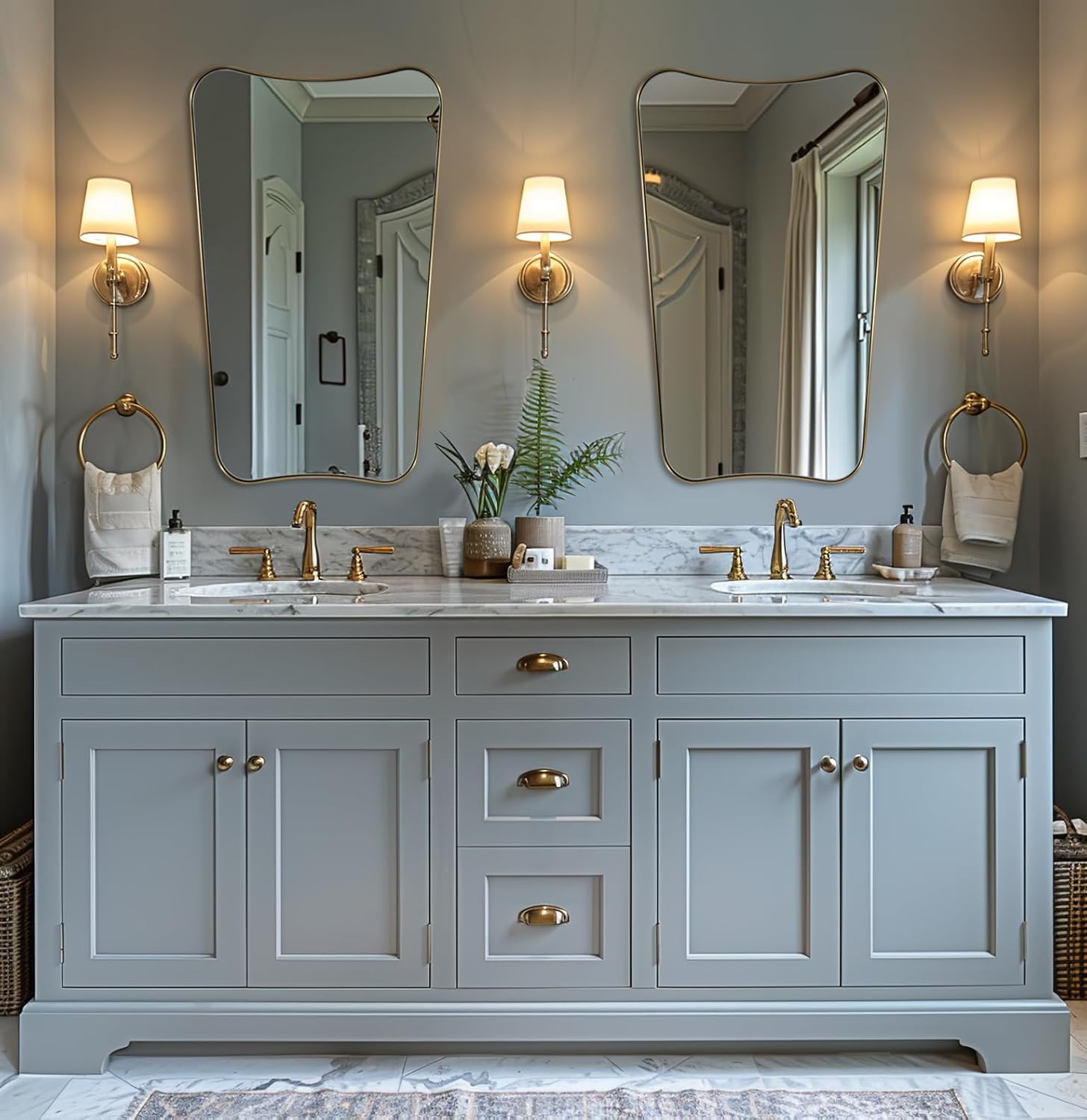 - 【Sophisticated Curved Design】: With captivating asymmetry and irregular shapes, this brushed gold bathroom mirror is a work of art. Whether you have a contemporary, minimalist, rustic, or eclectic bathroom decor, our gold irregular wall mirror effortlessly blends in, adding a touch of individuality and character to any space