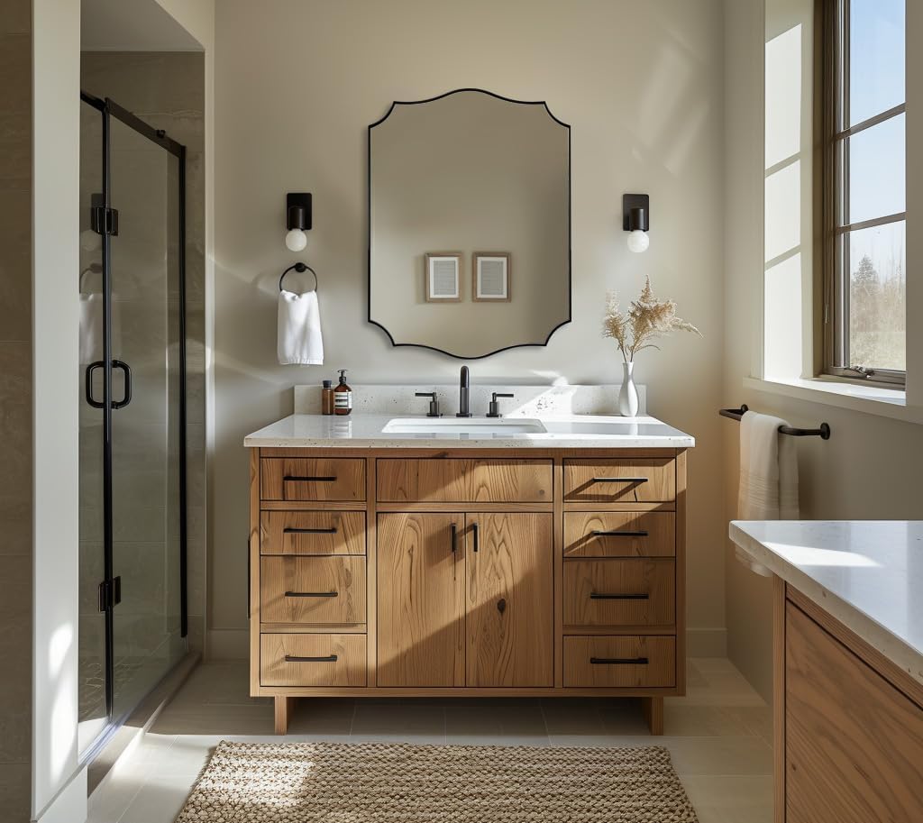 - 【Sophisticated Curved Design】: This matte black vanity mirror is a work of art with captivating asymmetry and irregular shapes. Whether you have contemporary, minimalist, rustic, or eclectic bathroom decor, our irregular wall mirror effortlessly blends in, adding a touch of individuality and character to any space