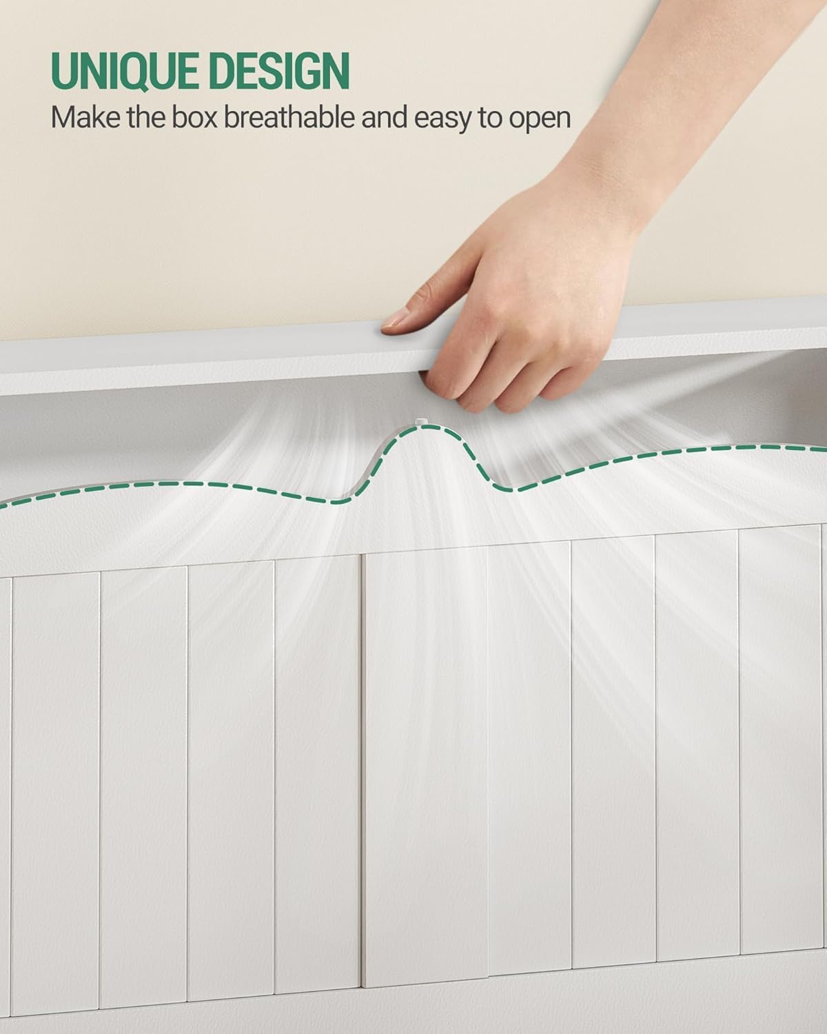 43.3" Storage Chest, Extra Large Storage Trunk with 2 Safety Hinges, Lift-Top Bench Box, Wooden Chest Organizer, Shoe Bench for Entryway, Bedroom, Living Room, White SB25503X