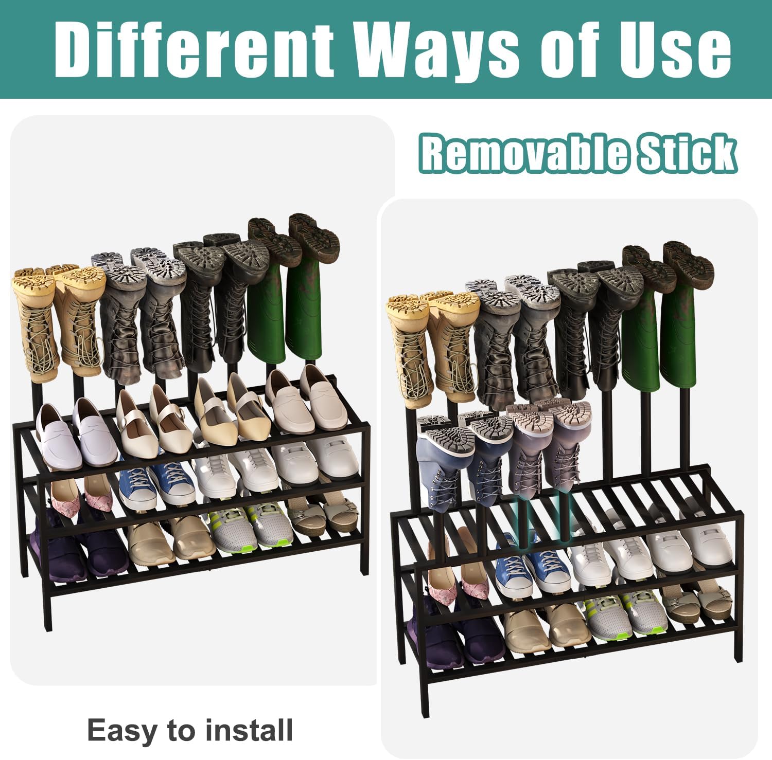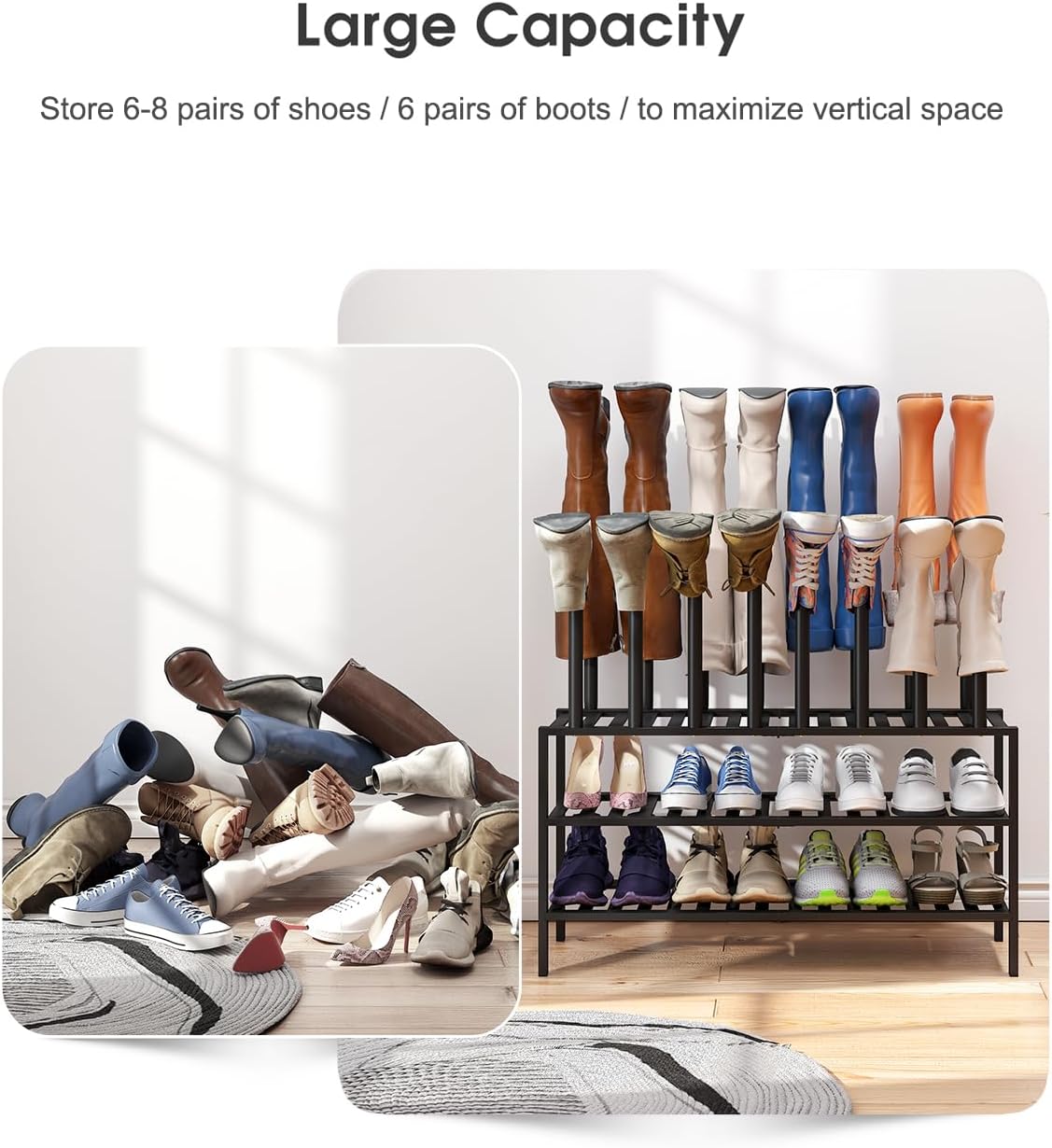 Black Boot Rack, Long Boot Rack Organizer Tall Boots with Shoe Rack for Closet, Bamboo Wood Shoe Shelf Storage Organizer for Entryway Small Space