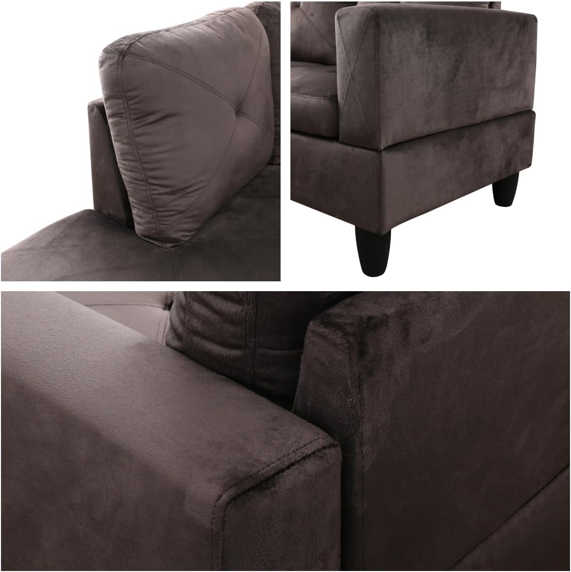 L Shaped Sectional Sofa with Ottoman, Microfiber Right Facing Modern Couches for Living Room, Bedroom, Office,Espresso