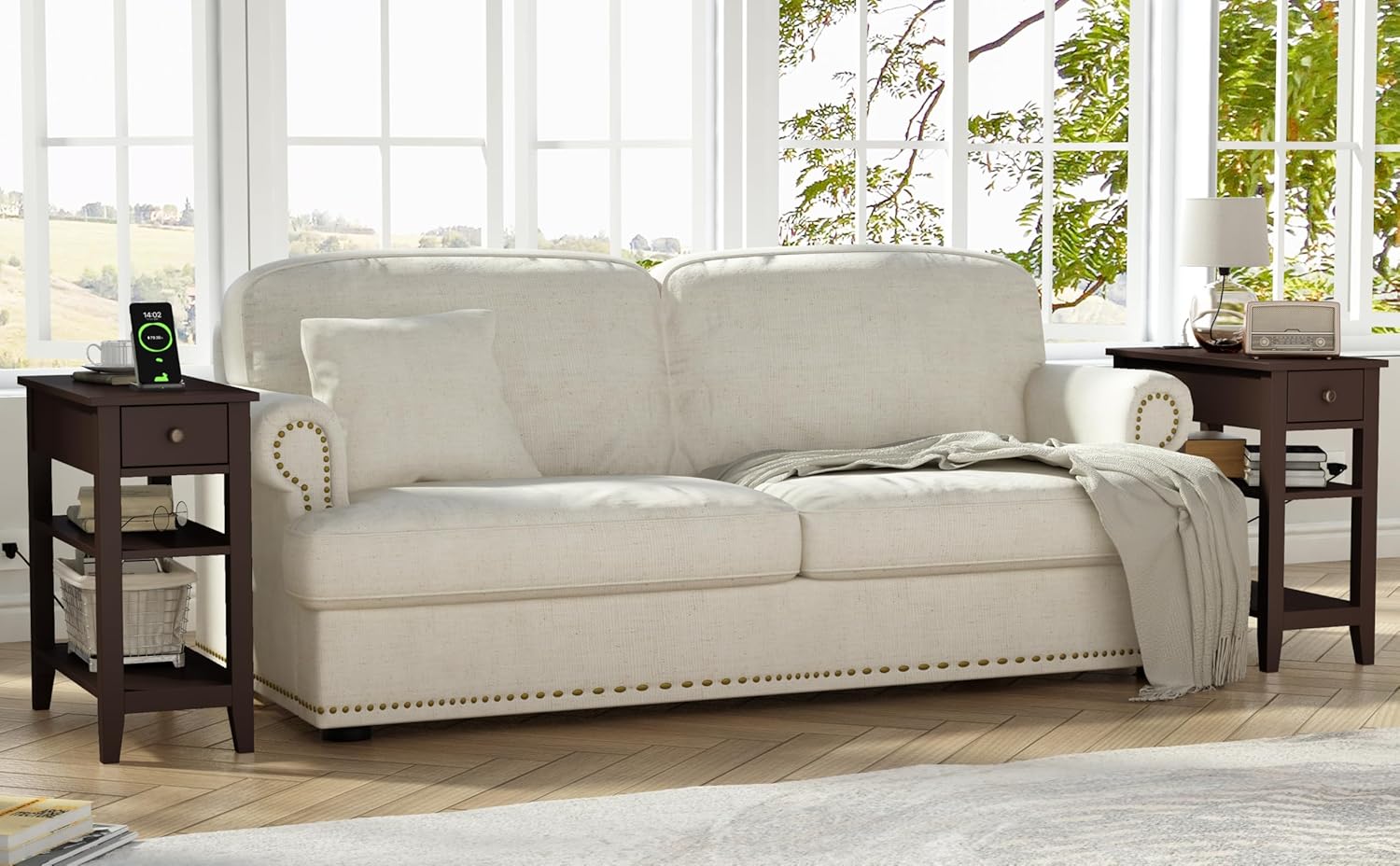 - 【End Table with Charging Station 】With this narrow side table set of 2 achieving charging freedom, this end tables living room includes 2 standard outlets and 2 USB ports can easily charge your desk lamp, cell phone, tablet PC or electrical appliances needs, different plugs that can be used together will save your time, sufficient 6.5 ft cord length for more placement options