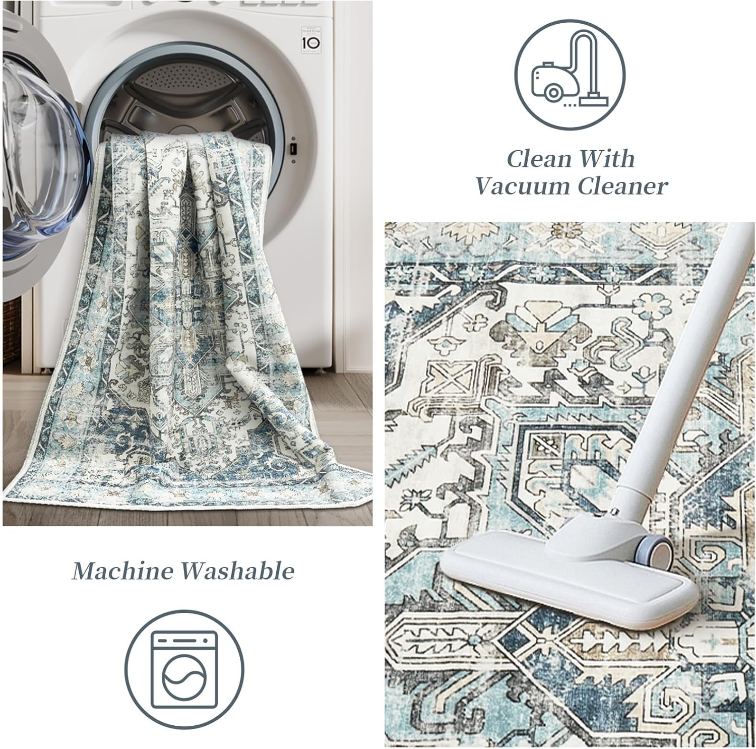 - EASY CARE & WASHABLE RUG: Stain-resistant 8x10 rug, it won't trap dirt. Surface dust can be wiped with a towel or cleaned with a robot vacuum or vacuum cleaner. Of course, it can also be machine washed regularly.