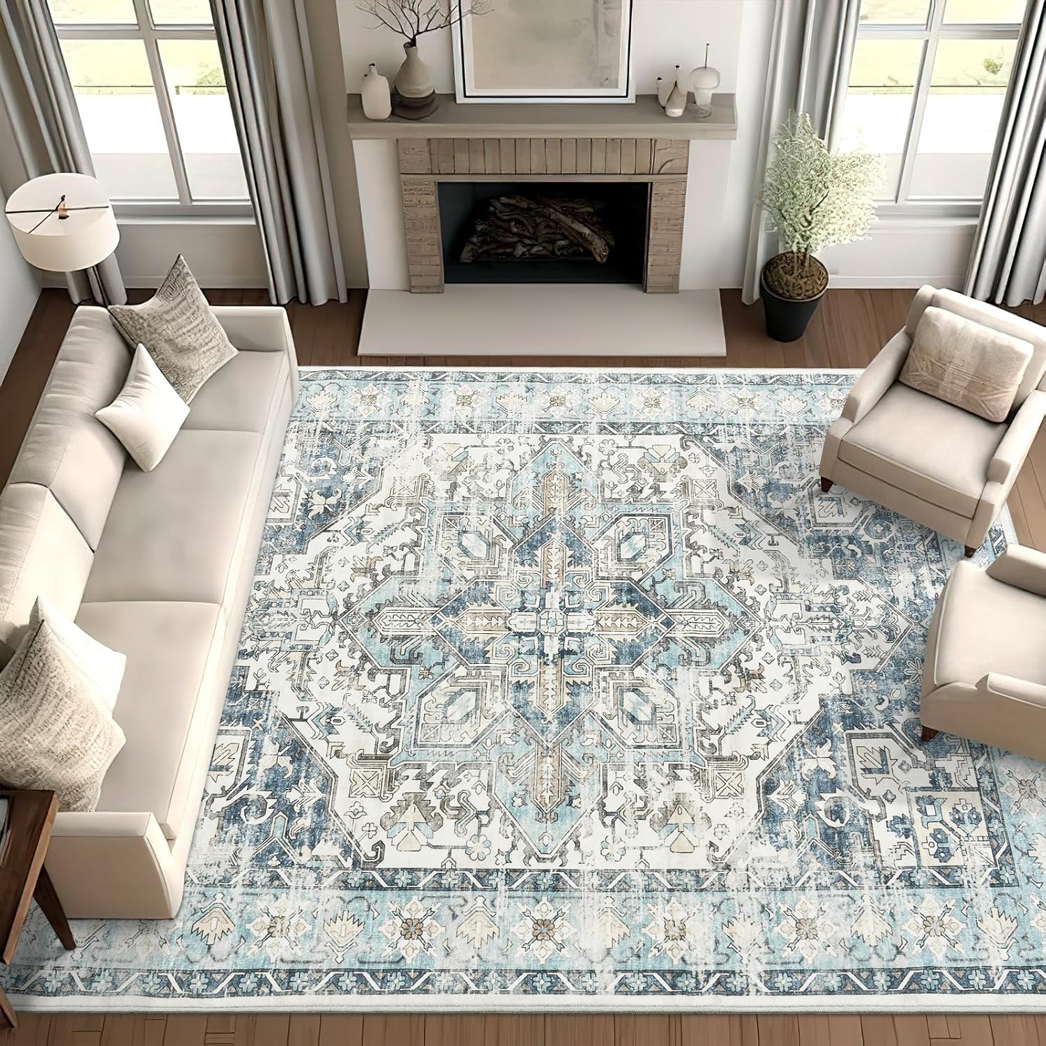 zesthome 8x10 Area Rugs-Washable Rug for Living Room, Non-Slip Backing Rugs, Stain Resistant 8x10 Rug for Bedroom, Ultra-Thin Low Pile Rugs, Vintage Large Home Decor