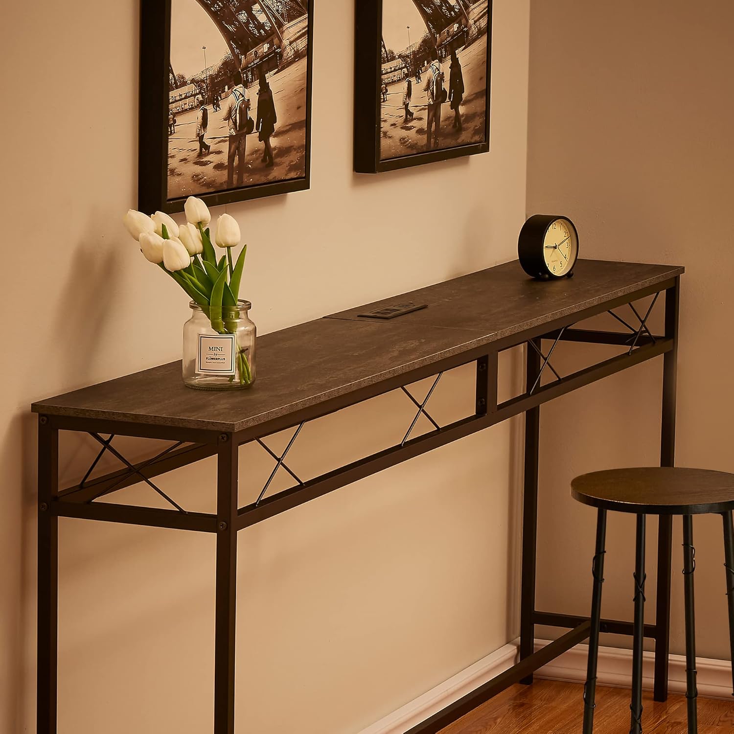 - Couch Table with Charging Station: Comes with 2 outlets, 2 USB ports and an extra long 9.8-foot power cord, this console table can meet your daily charging needs for mobile phones, laptops, lamps and other electronic devices, helping you stay away from low battery worries.